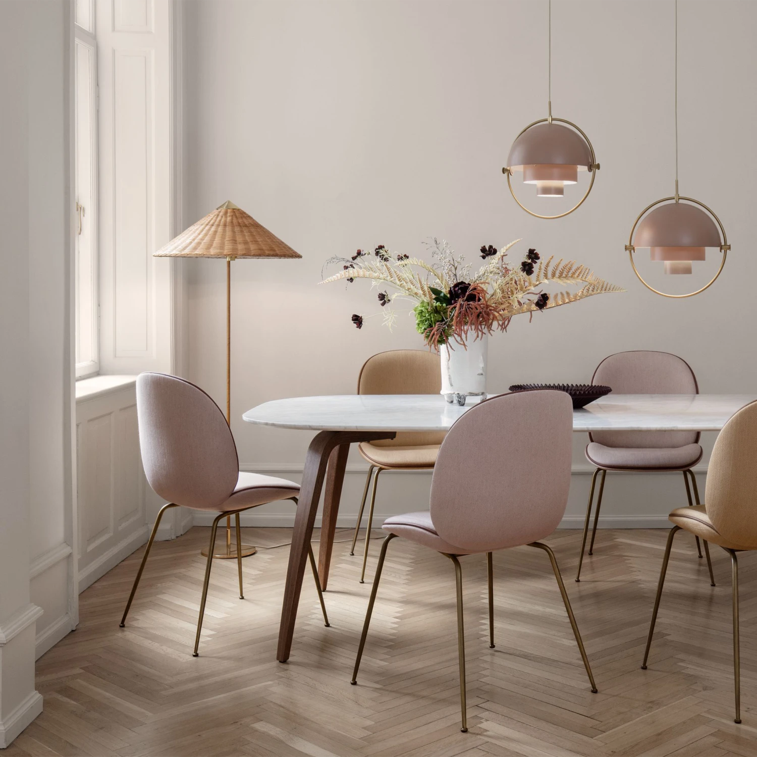 The 9602 Floor Lamp, also known as “Chinese Hat” was designed by Paavo Tynell in 1938 for the Aulanko hotel.