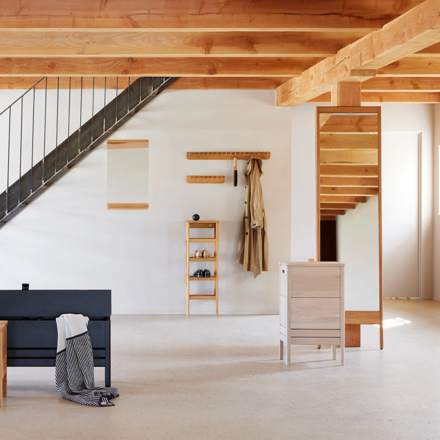 A Line is a collection of functional furniture made of a mix of rediscovered classics and new reinterpretations of storage essentials. The series consisting of Storage Bench, Mirror, Shoe Rack, Laundry Box and Stepstool.