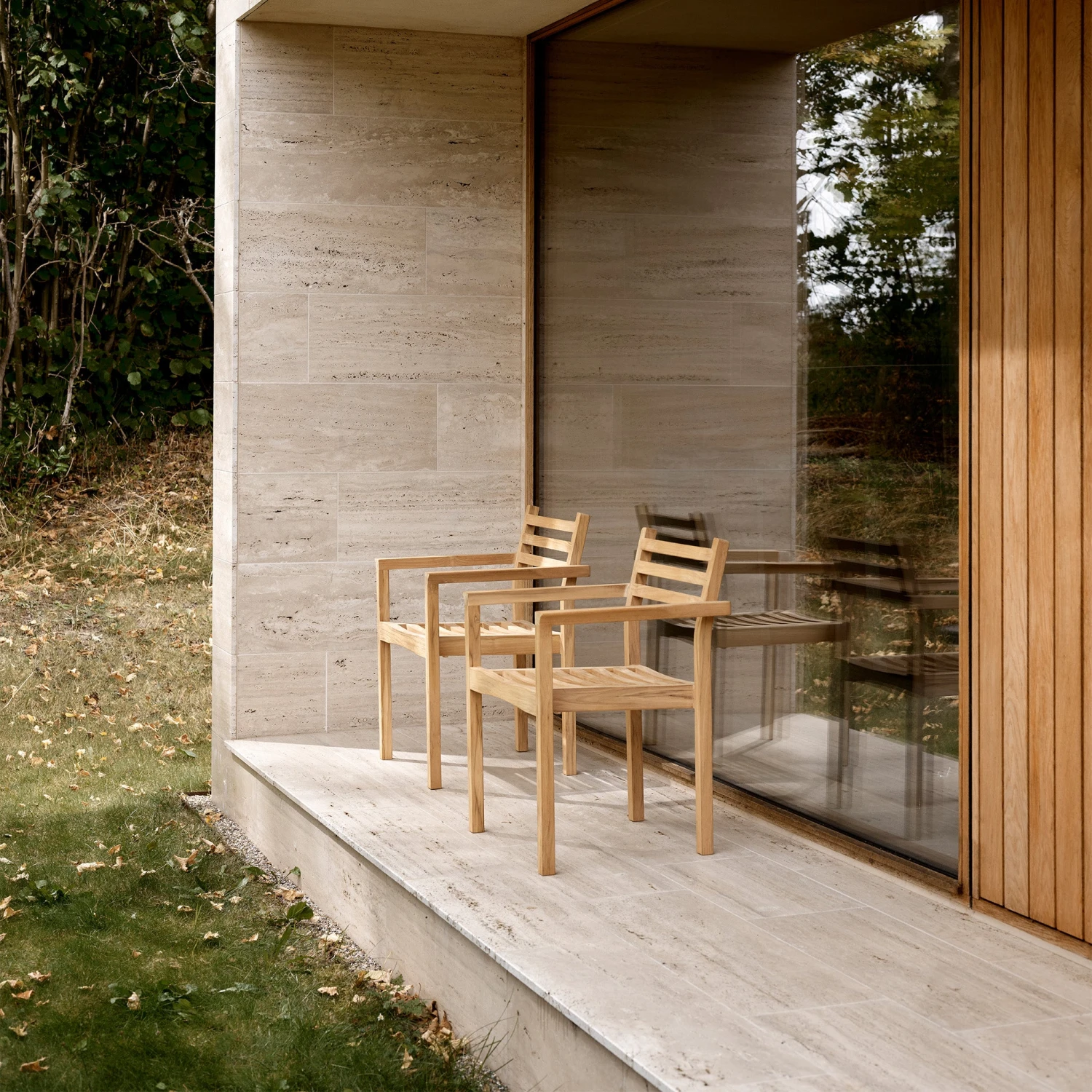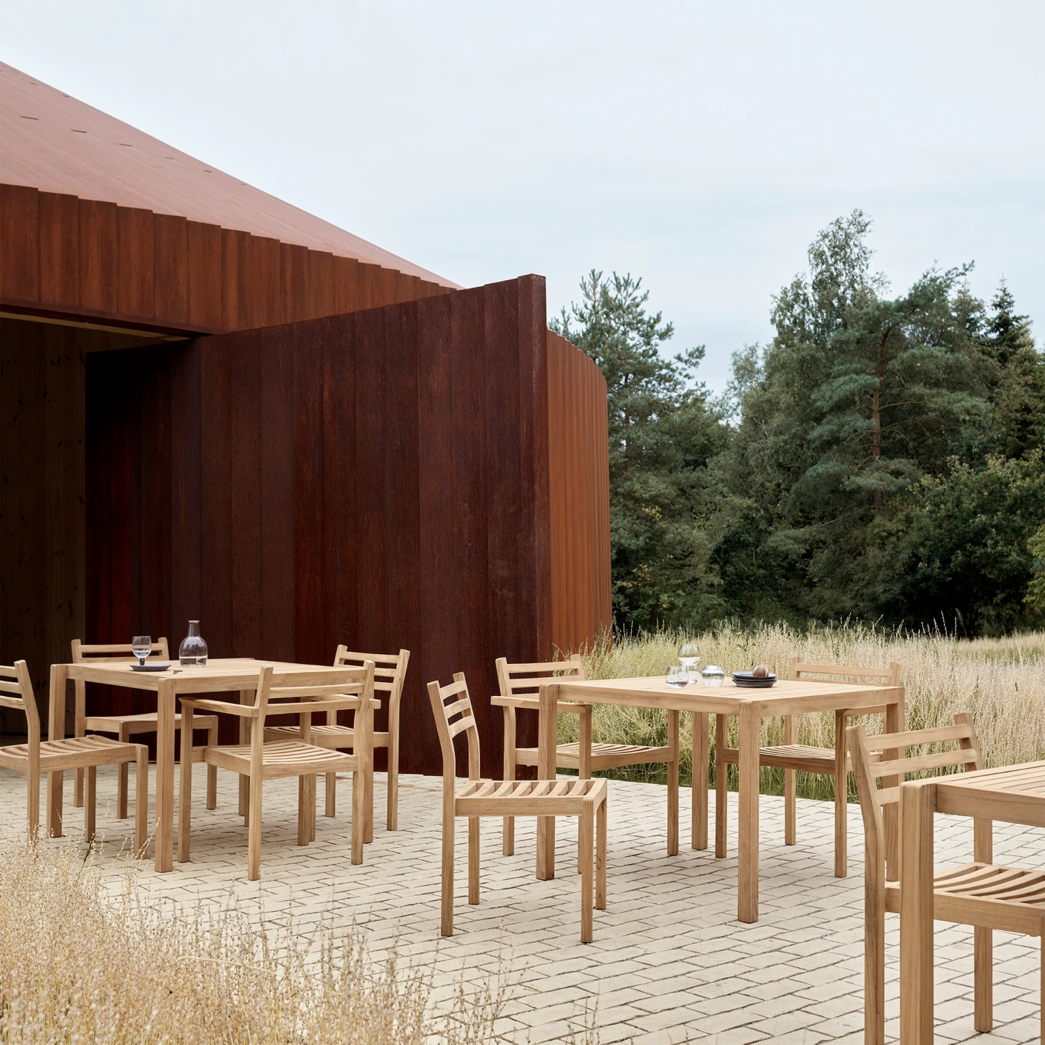 All furniture in the series is made of untreated, FSC-certified teak – a hard, strong wood type, which is well-suited to changing climates and highly resistant to fungal attack. Joints are meticulously polished by hand by the skilled craftsmen at Carl Hansen & Søn, to achieve a soft and tactile surface.