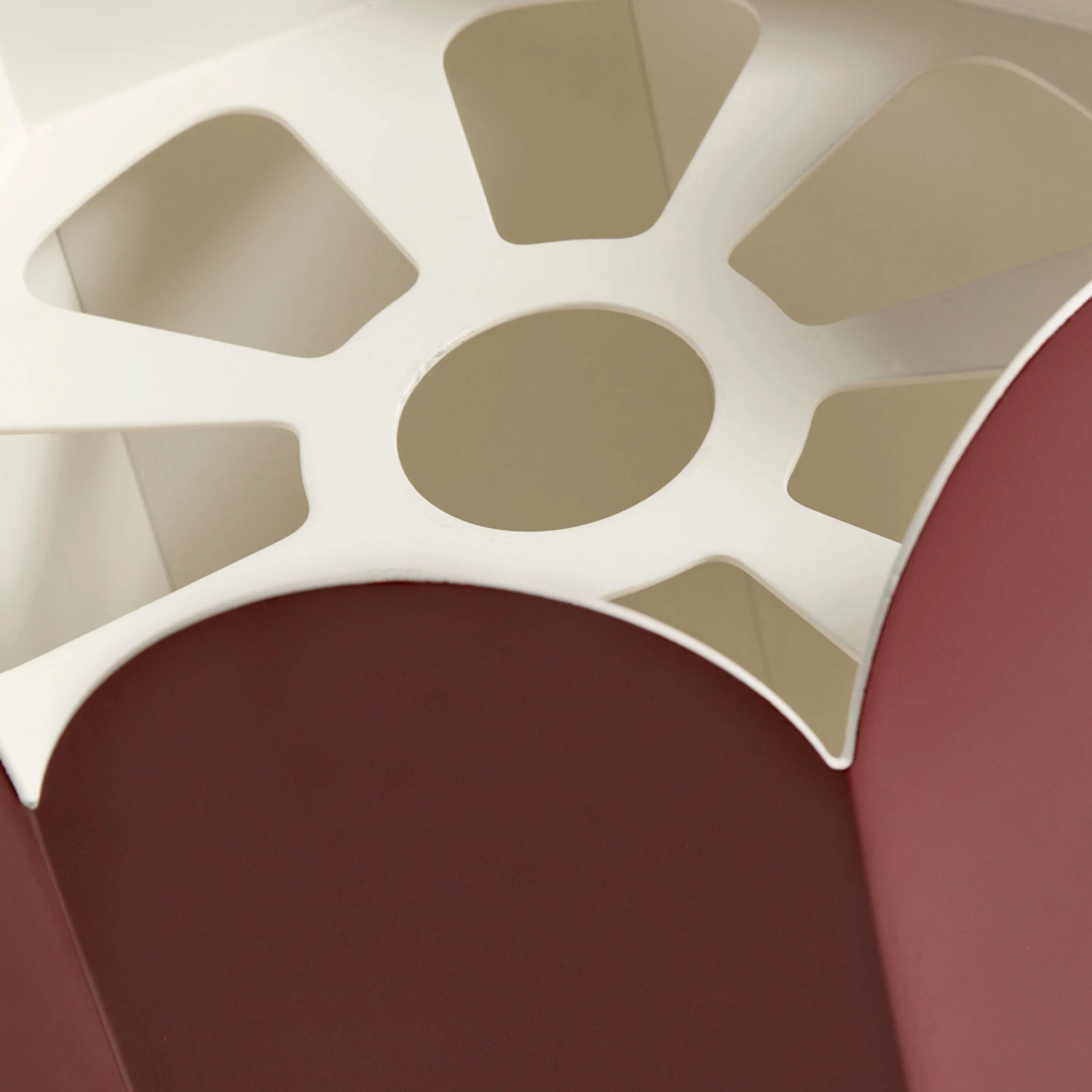 Stamped and bent sheet metal steel with a high gloss wet-spray or mirrored finish, available in Auburn Red, Sea Green, Cobalt Blue or Mirror.Â