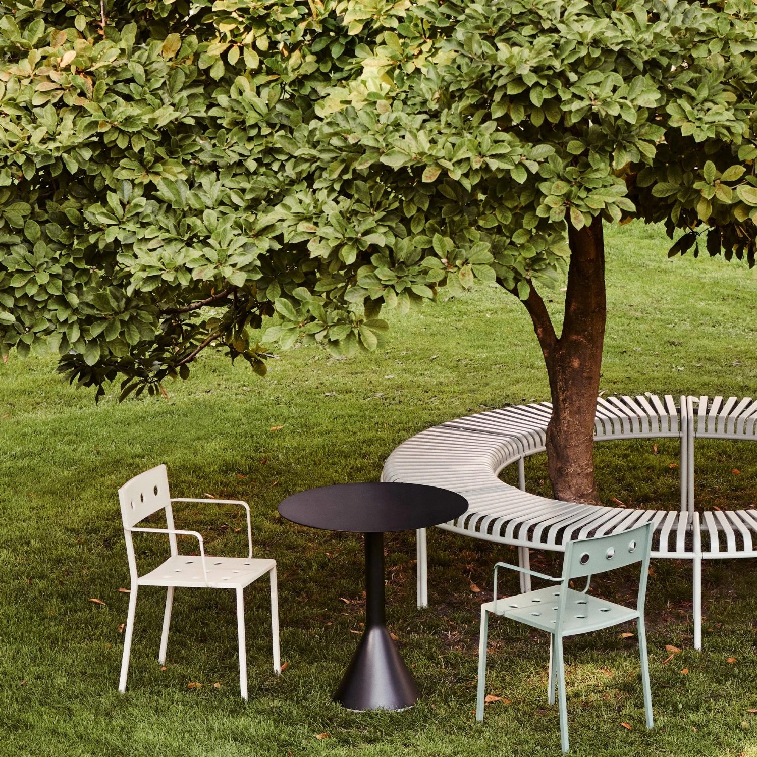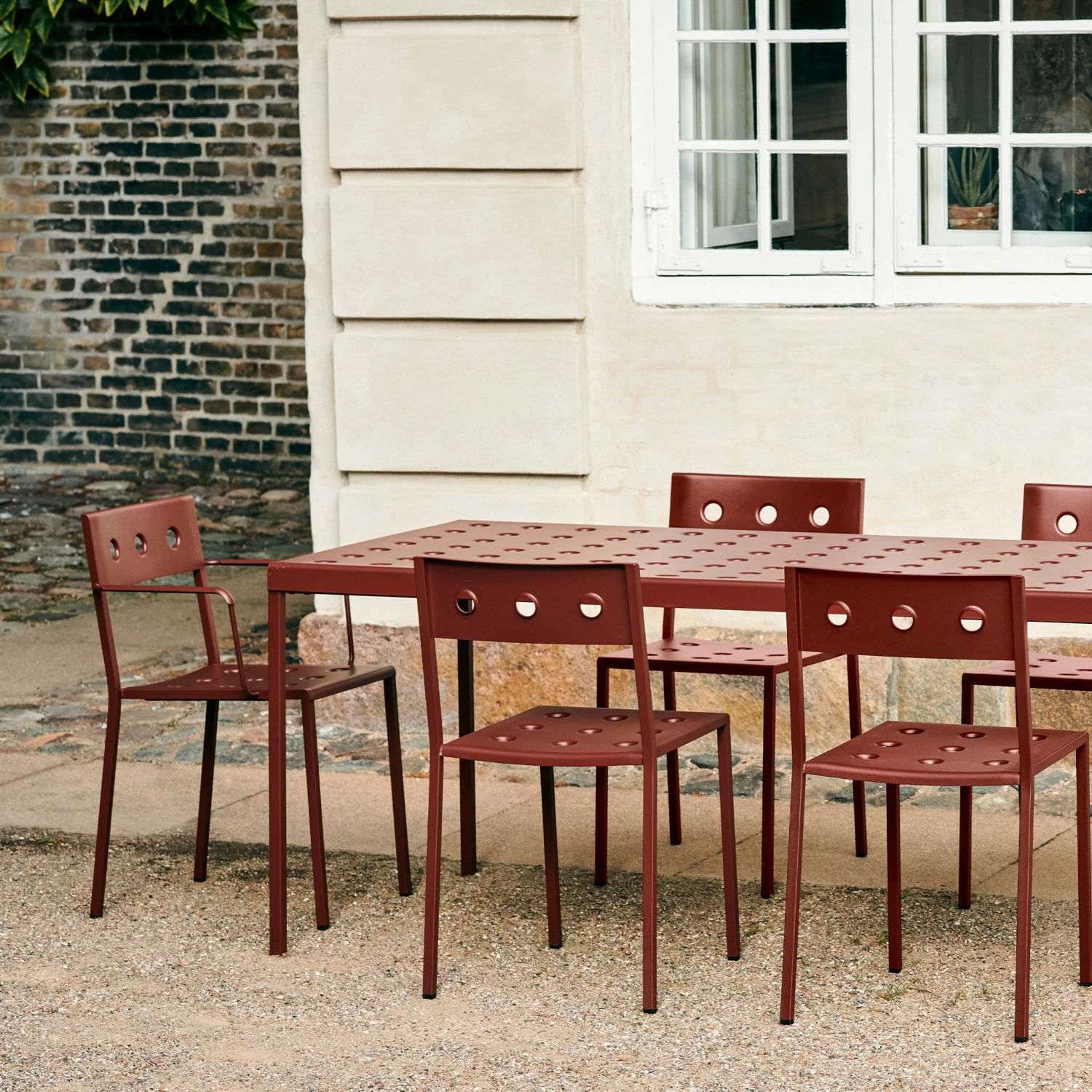 Comprising an assortment of chairs, tables and benches, the Balcony family’s expression is characterised by the symmetrical holes incorporated into the design. The presence of these laser-welded holes softens the aesthetics, as well as providing extra stability, creating a versatile collection that offers strength, comfort and a distinctive appearance.