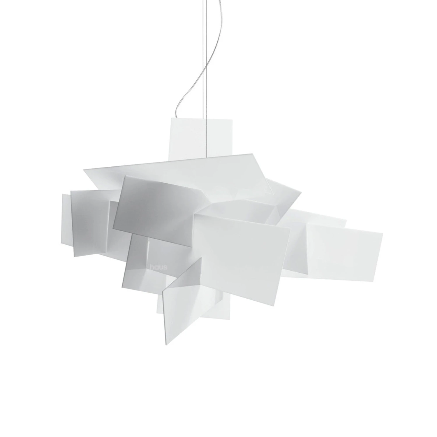 The Big Bang suspension lamp is a model that will not go unnoticed: an explosion of criss-crossing forms which create surfaces, lights and shadows, and a strong architectural and scenic effect.