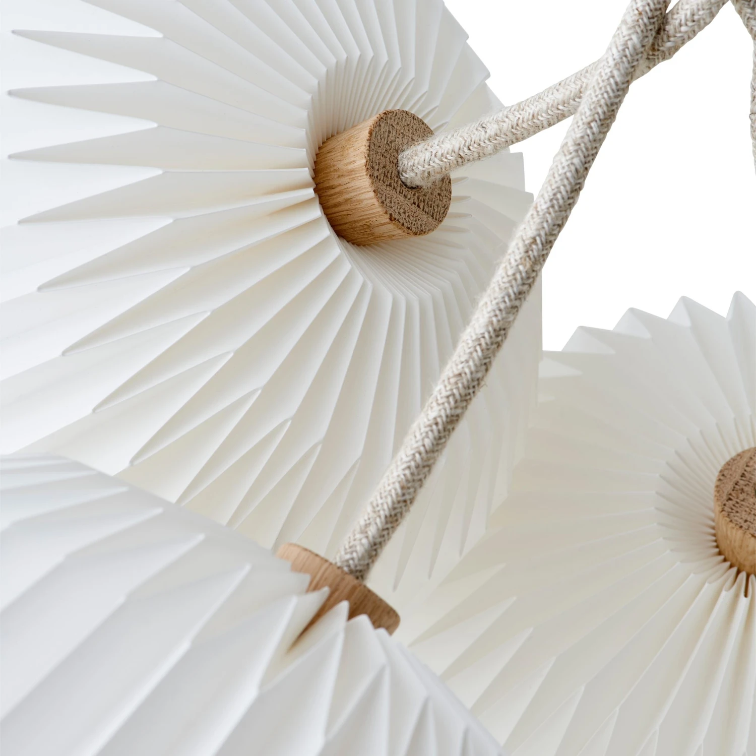 Designer Sinja created The Bouquet lamp series with the intention of embracing Nordic elegance and aesthetics. The combination of rustic braided flax textile electrical wires, oak details and LE KLINT precision pleating patterns, has been fused together to create a softer organic expression.