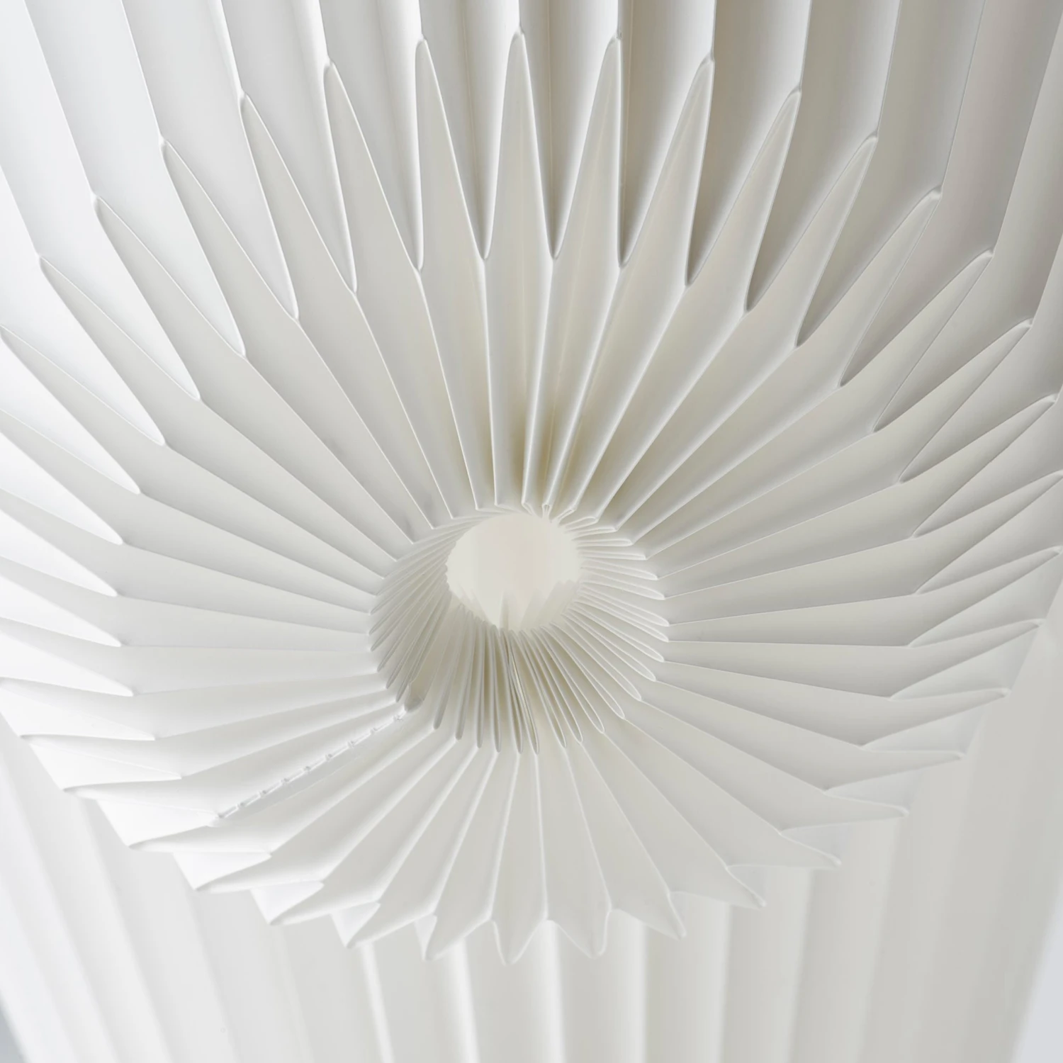 Pleated plastic sheet or paper shade. Plastic diffuser. Braided linen cord.