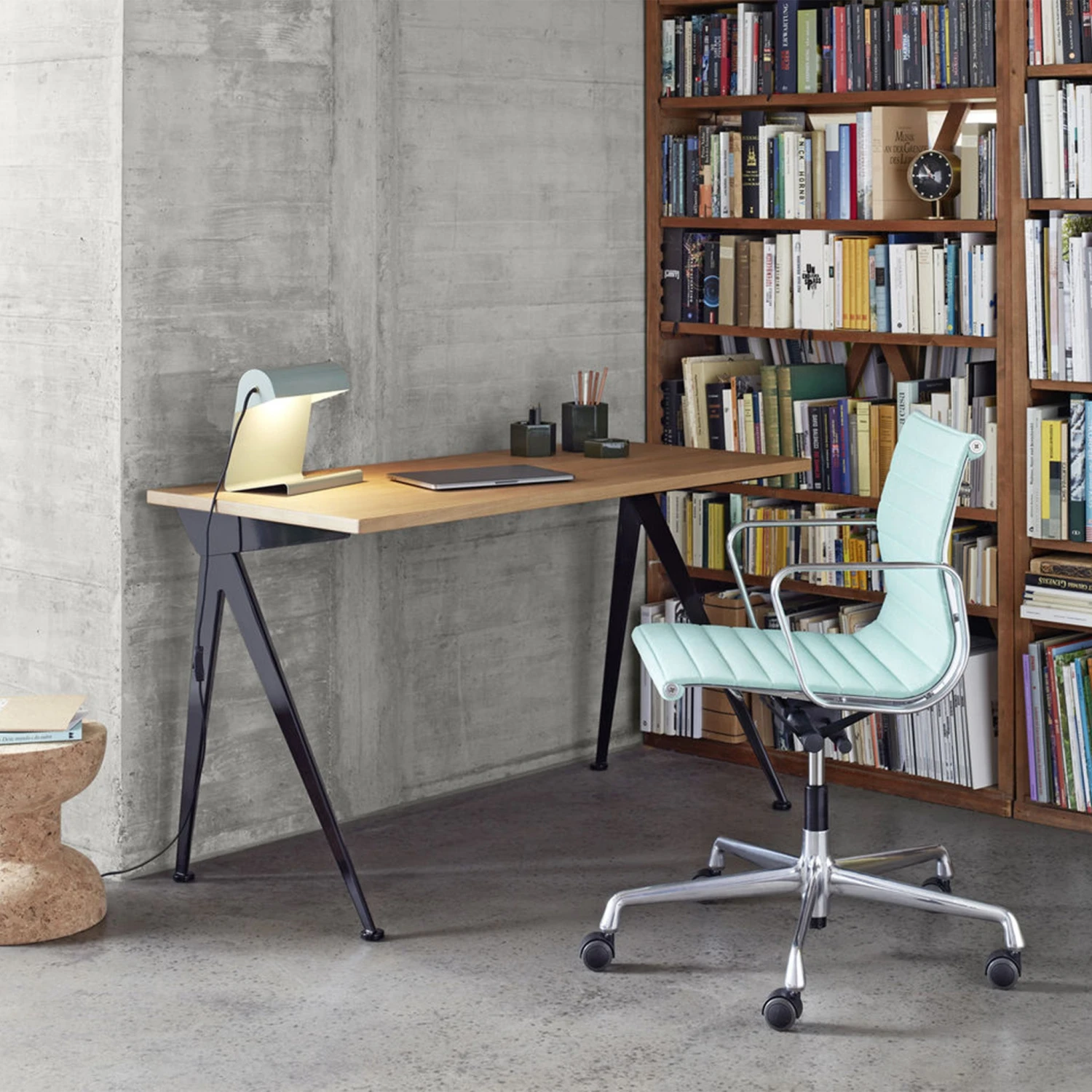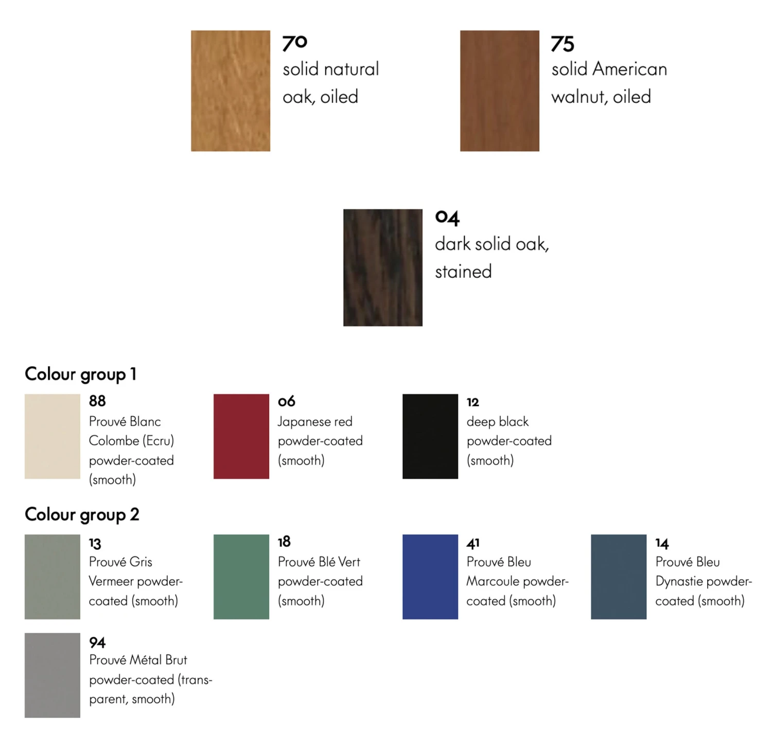 The colours Prouvé developed for the steel elements of his furniture (and his architecture) drew on various references – from his Blé Vert, which describes the colour of young green wheat, to Gris Vermeer, which alludes to the grey tones in the work of the painter Johannes Vermeer.