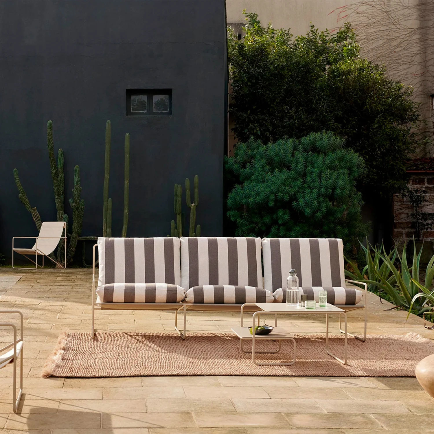 Create an inviting and comfortable outdoor lounge area with the Desert Sofa collection, where there is plenty of room for sunbathing, reading books and entertaining friends and family. With the unpredictable weather in mind, the Desert Sofa is designed for outdoor use and is completed with cosy sofa cushions that are both water and UV resistant.