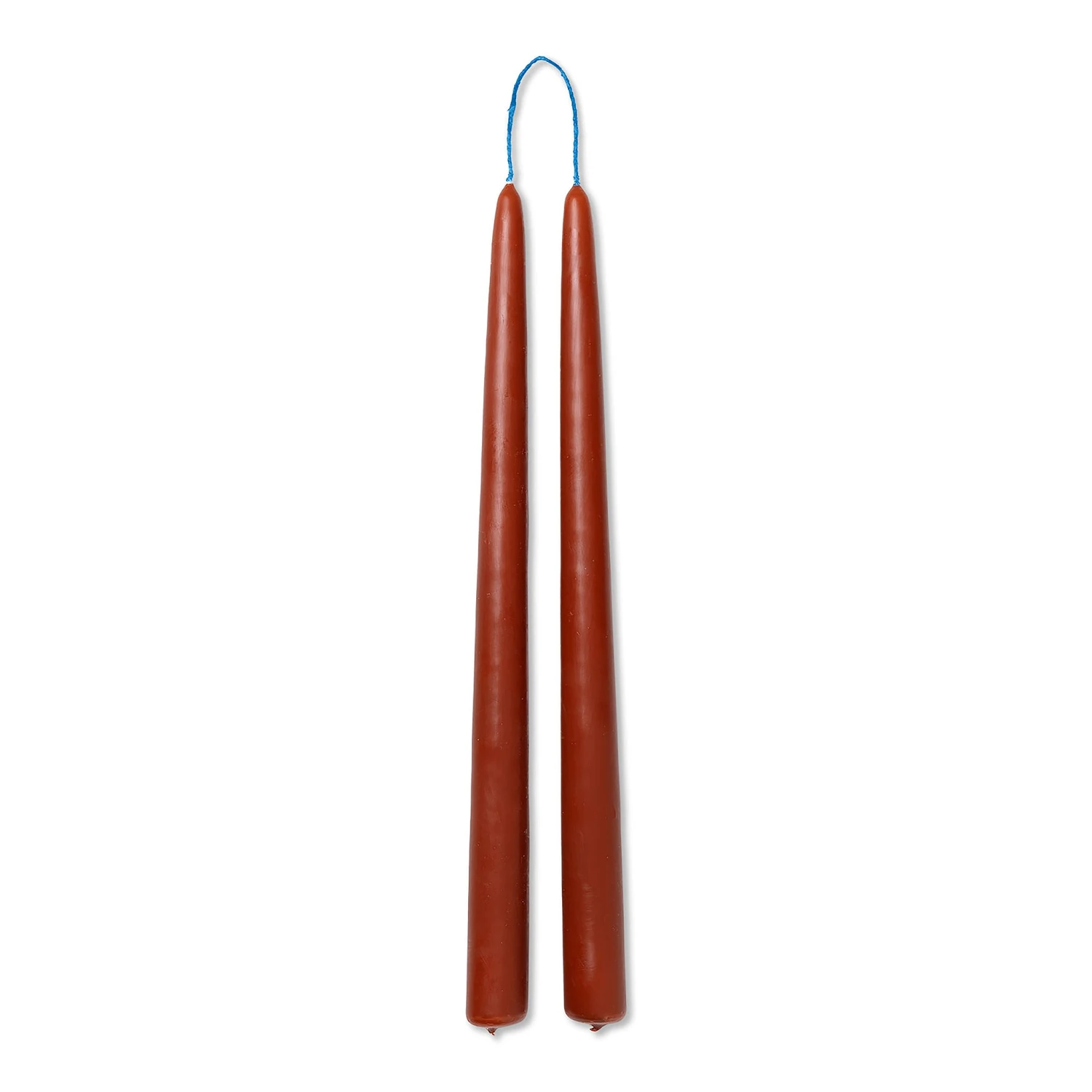 Featuring a distinctive blue wick, this set of 2 hand-dipped candles in Rust will add a modern twist to any candleholder.