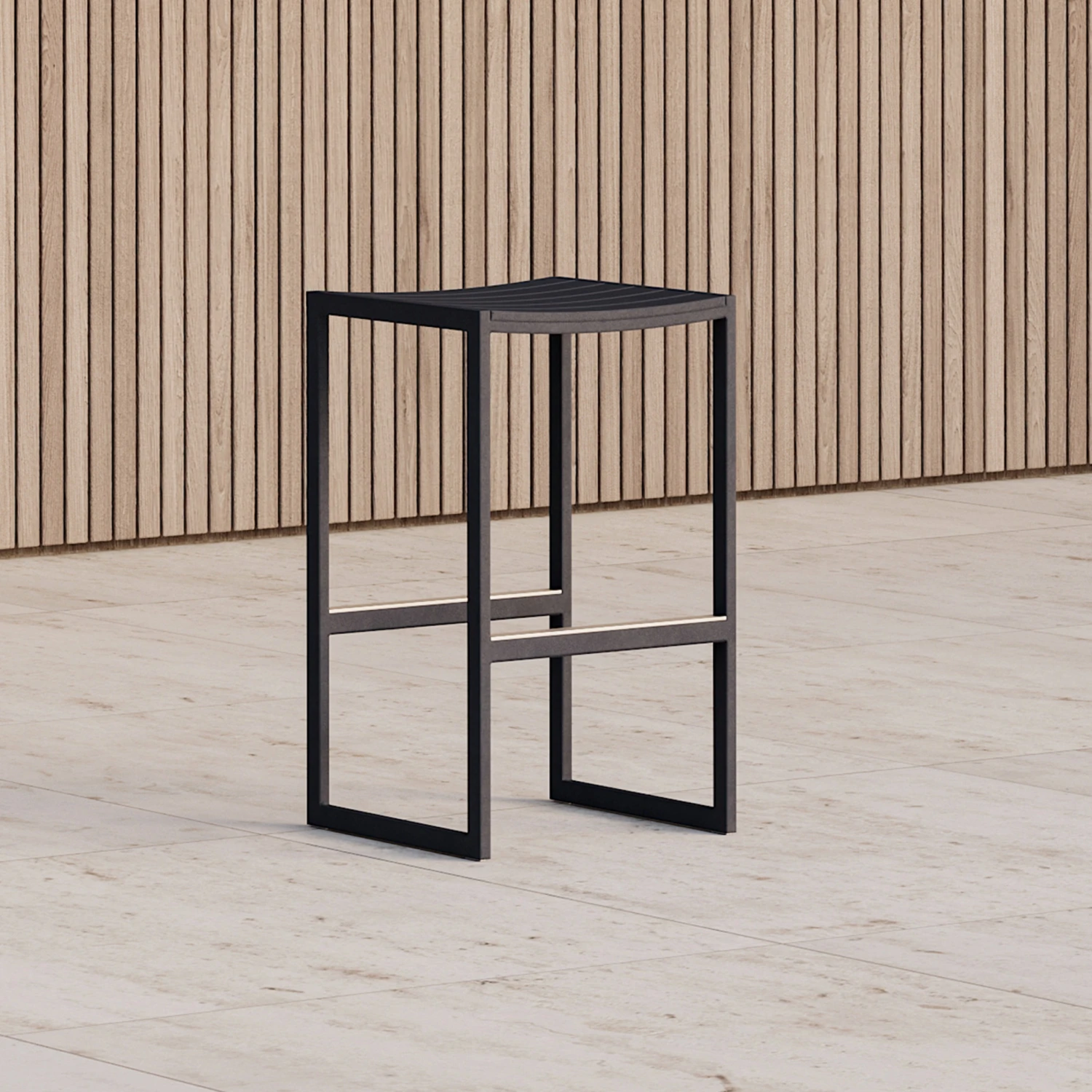 The Eos Backless Bar Stool is a versatile outdoor bar stool fully constructed from powder-coated aluminium that resists weathering and rusting over time. Finished with plastic floor guides for easy movement, and an anodised aluminium footrest for a durable finish, this bar stool pairs well with the Eos Rectangular Bar Table.