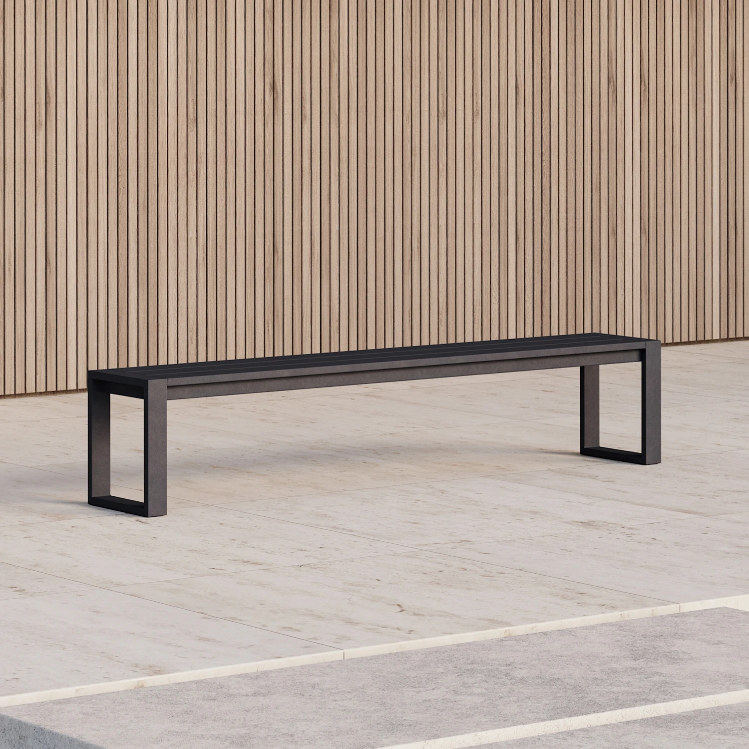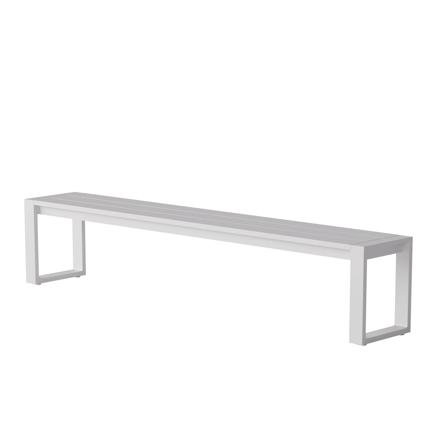 The Eos Communal Bench is a versatile and generously-sized outdoor bench fully constructed from powder-coated aluminium that resists weathering and rusting over time. Finished with plastic floor guides for easy movement, this bench pairs well with the Eos Communal Table.
