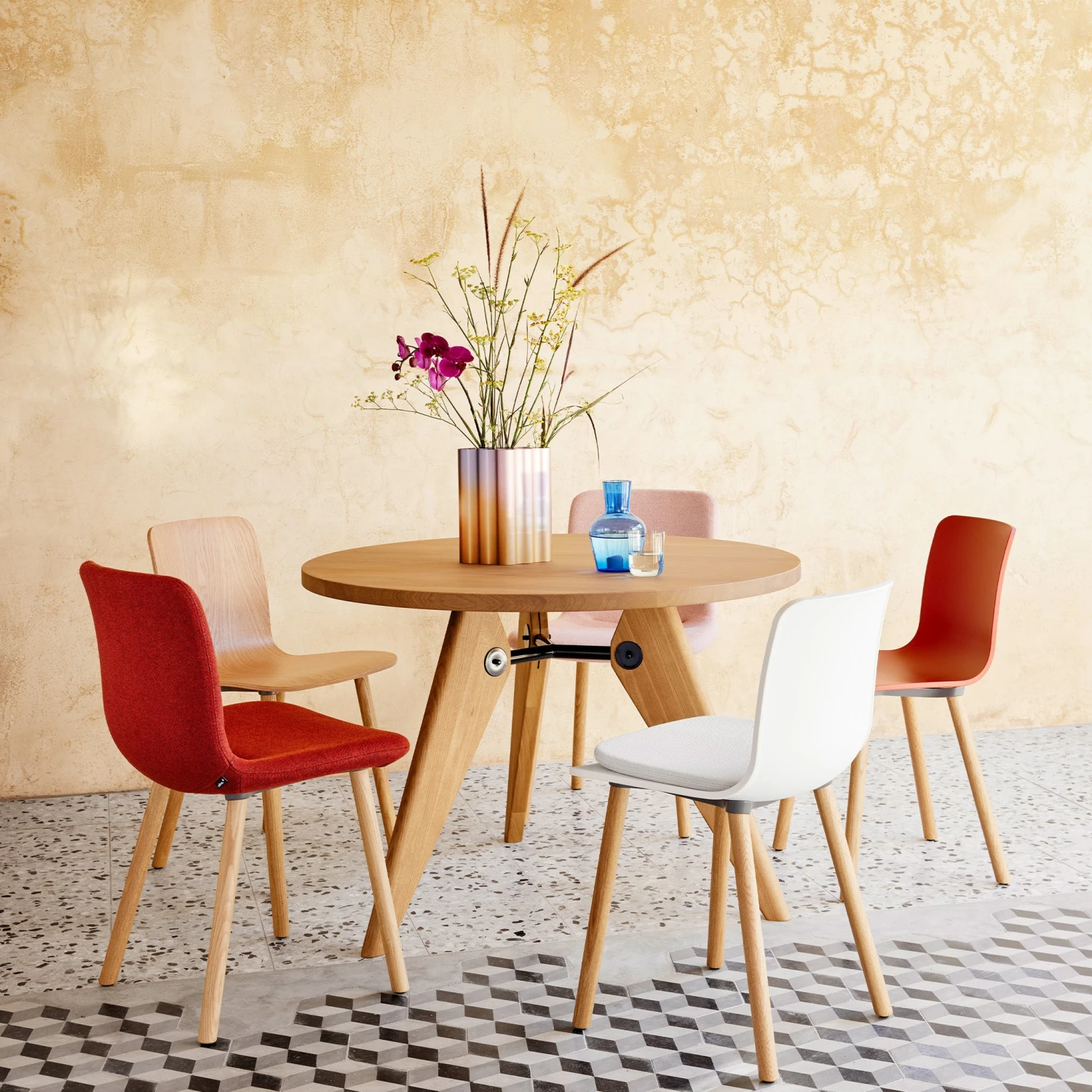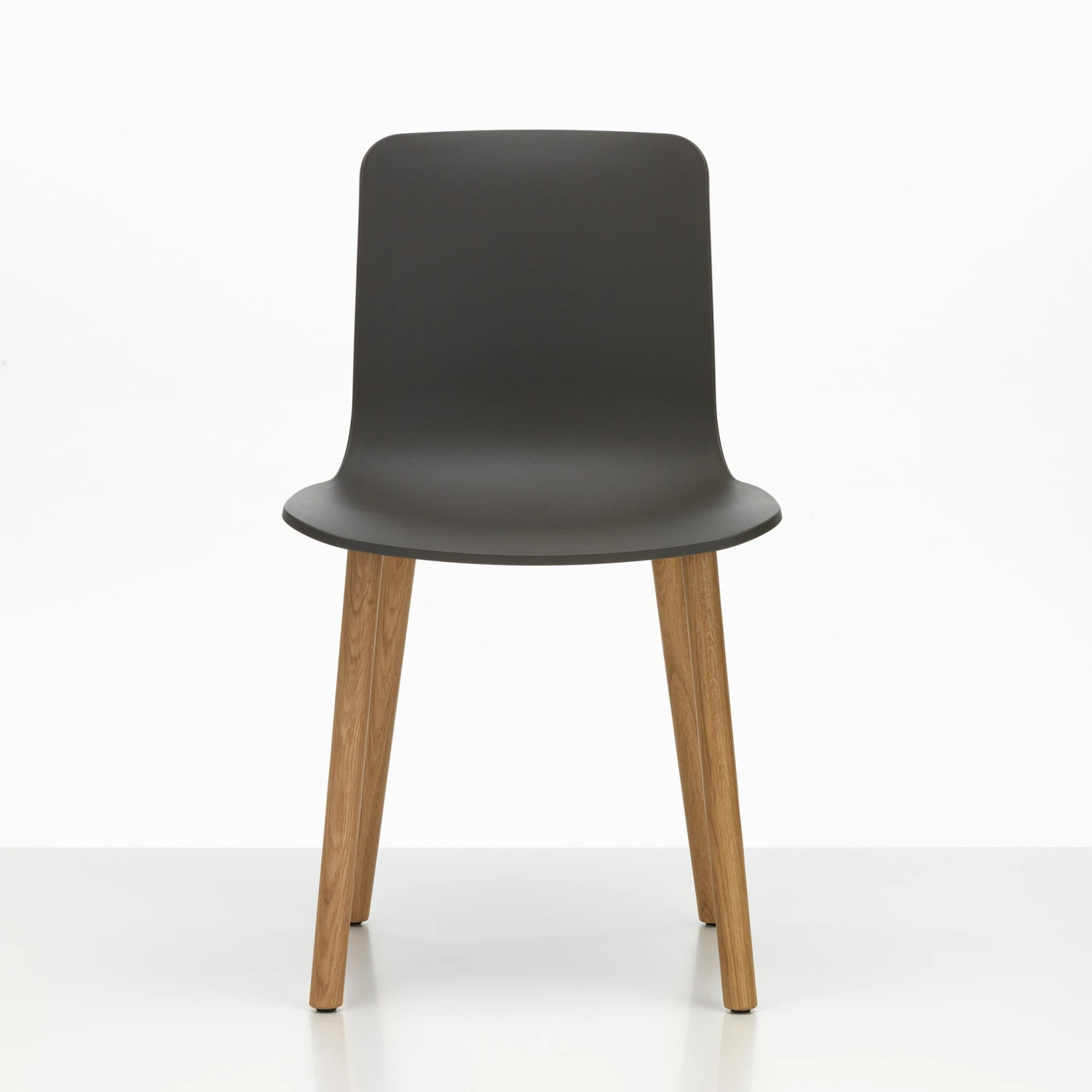 HAL RE Wood features a seat shell made of recycled plastic and base in solid wood. Utilising recycled material from household waste instead of conventional plastic generates less climate-damaging emissions, with a reduction in energy consumption. Due to the composition of the recycled material, the different colours are interspersed with tiny specks of pigment, giving the seat shells a certain natural appearance and a warm inviting appeal – especially when combined with the characteristic wooden legs in the version HAL RE Wood.