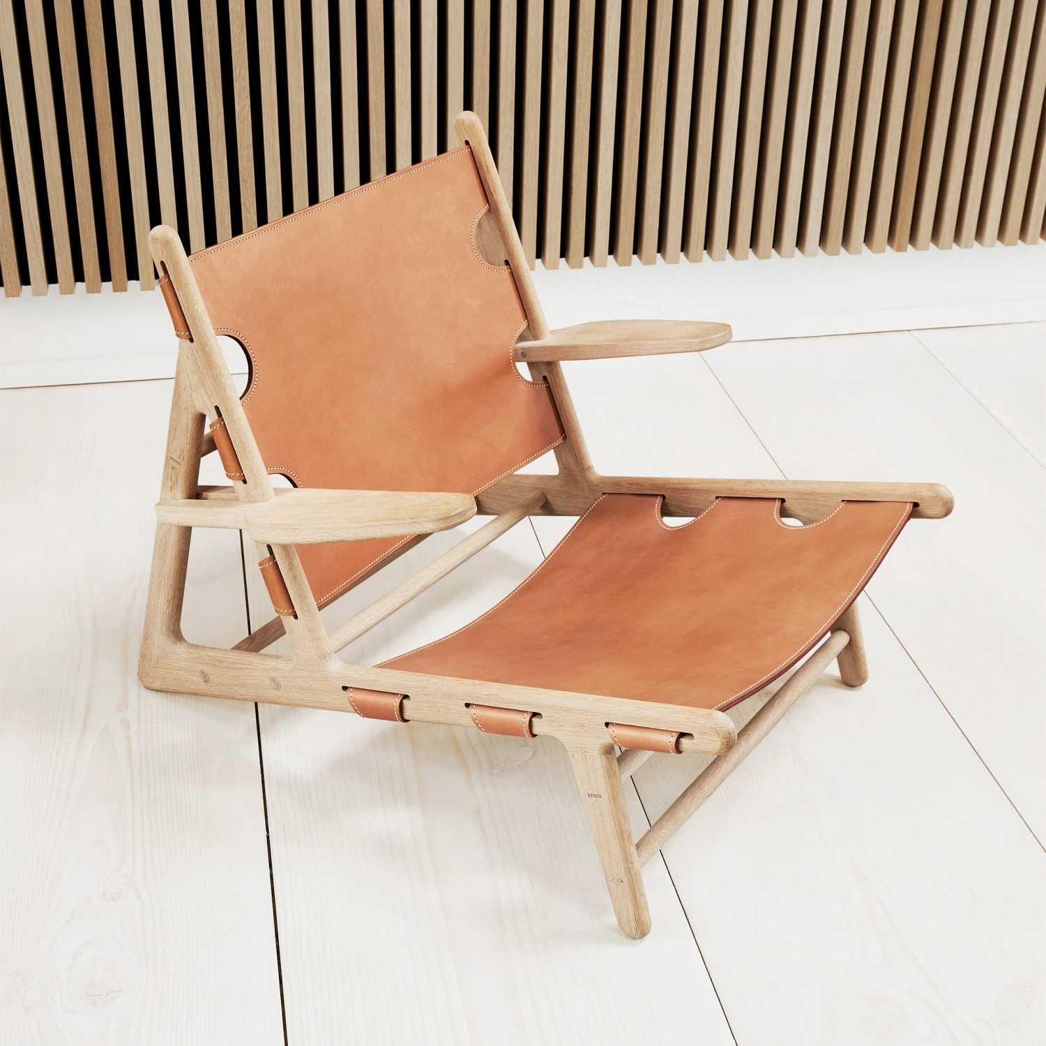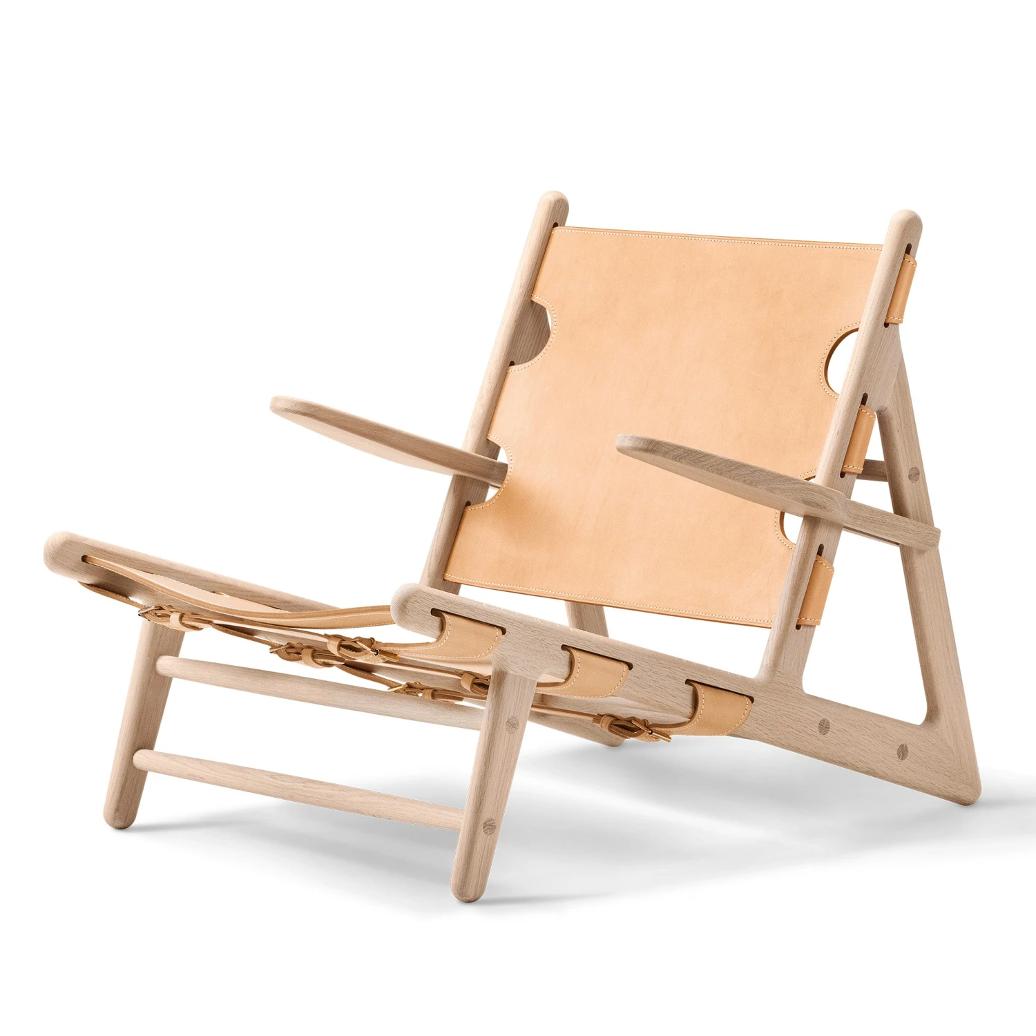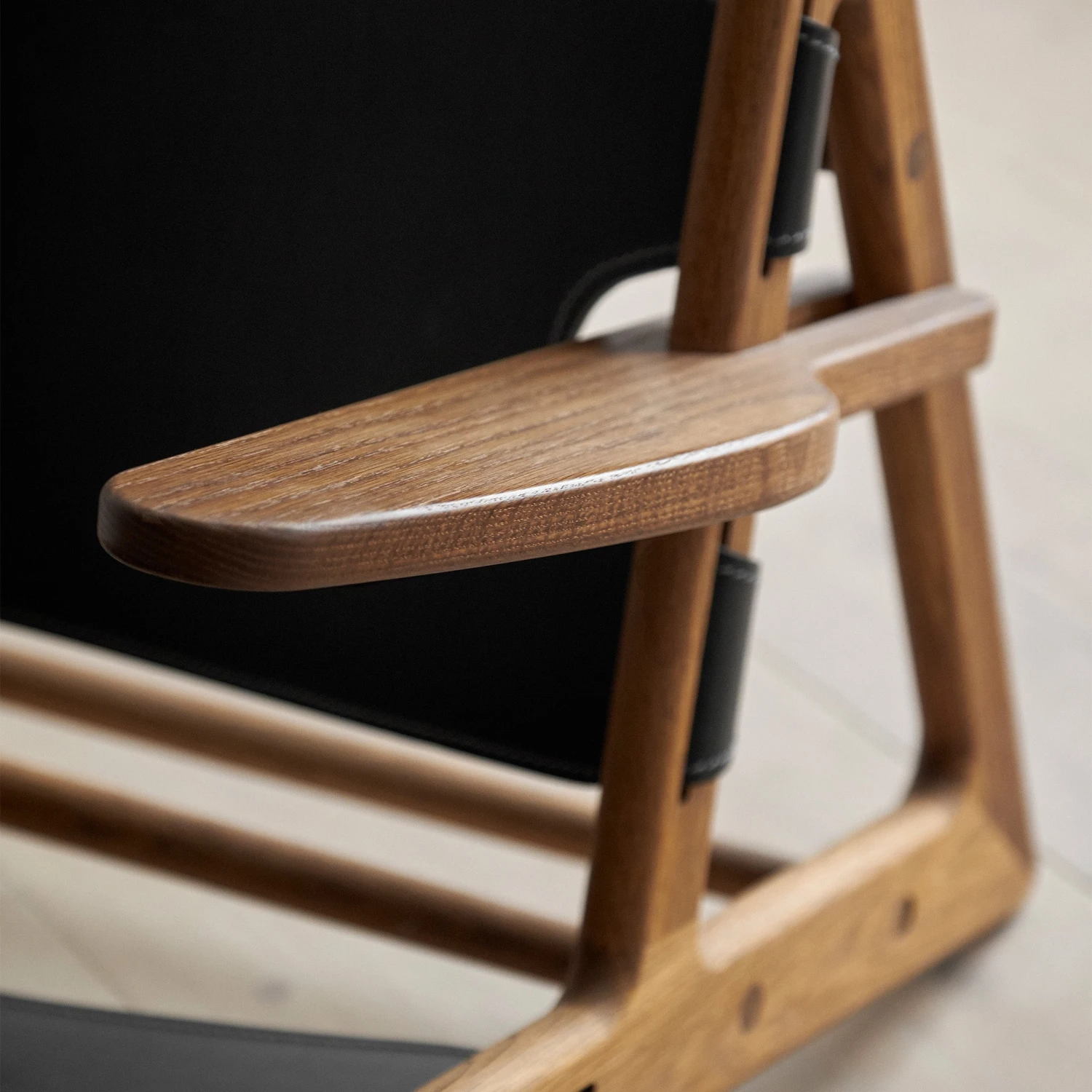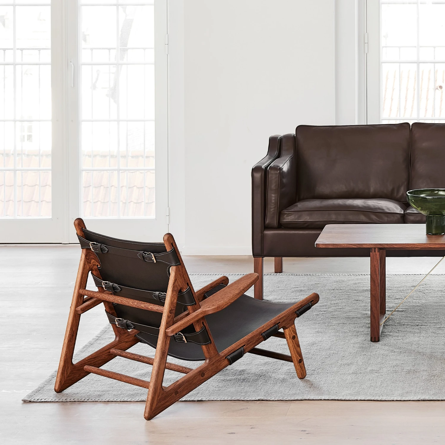The Hunting Chair, designed in 1950, is one of Mogensen’s most eye-catching pieces. Seen from the side, what’s most notable about the chair is the sharp diagonal slope from the edge of the front seat measuring only 30 cm above the floor. The overall look and logical construction were inspired by Spain’s medieval Andalusian furniture, something that Mogensen would return to time and time again, as seen in his subsequent development of The Spanish Chair.