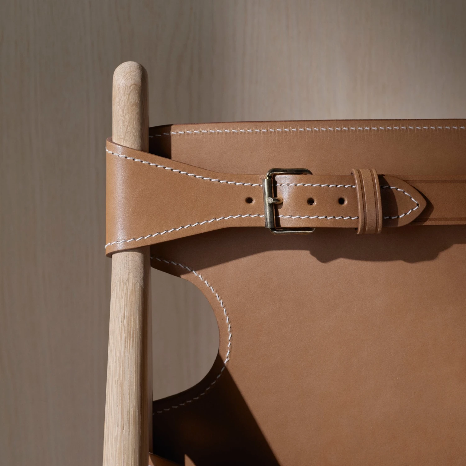 Solid oak, vegetable-tanned Saddle Leather and brass buckles