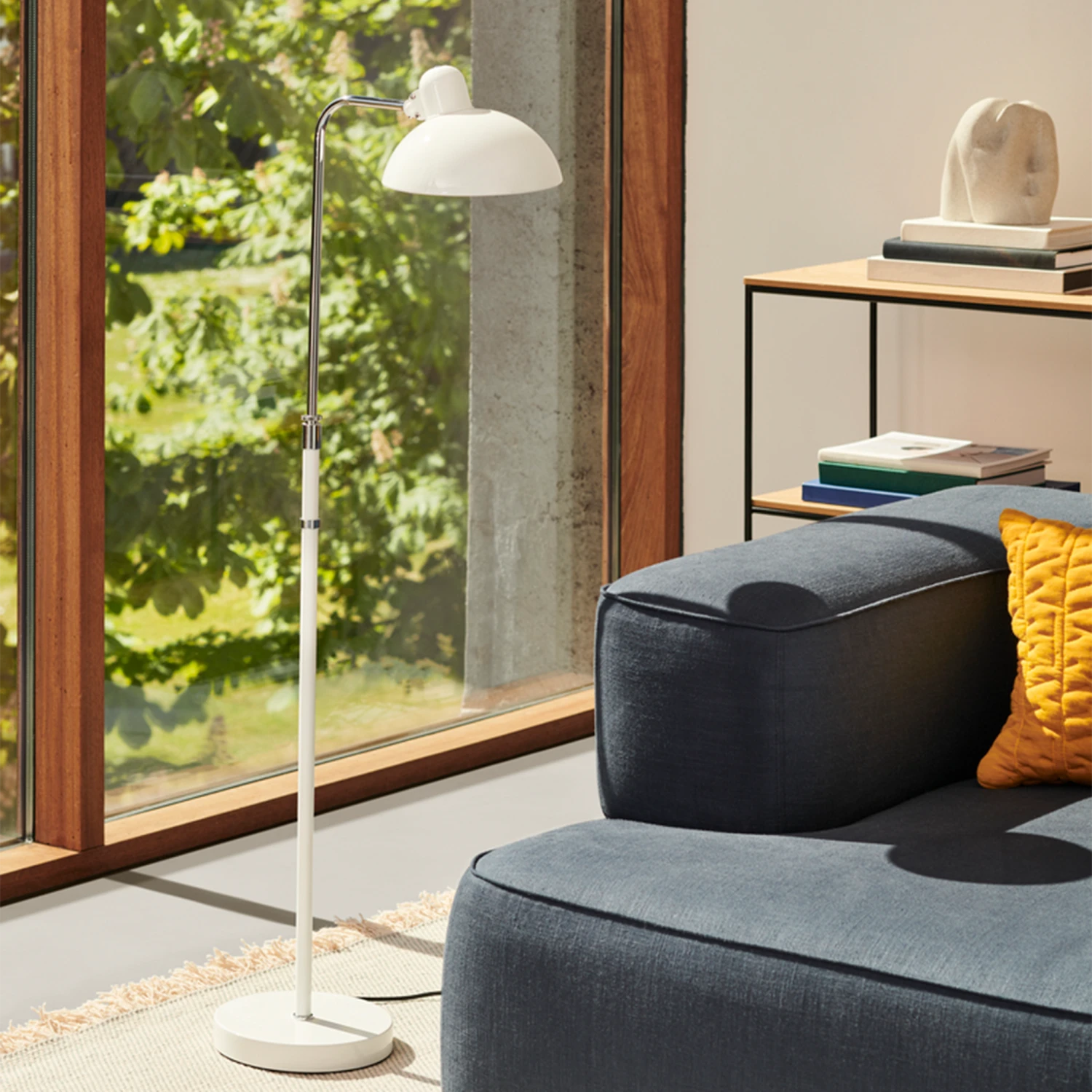 The KAISER idellâ„¢ 6580-F floor lamp embodies pure luxury with its stunning chrome details and high quality. A chrome plated clamp allows you to adjust the height from 1250mm to 1350mm, making it both sculptural and functional.
