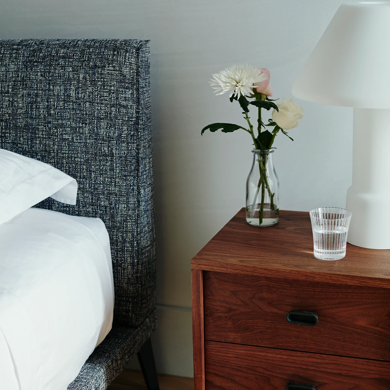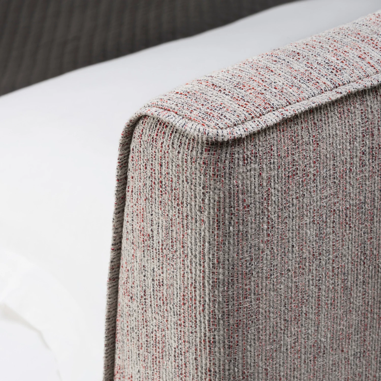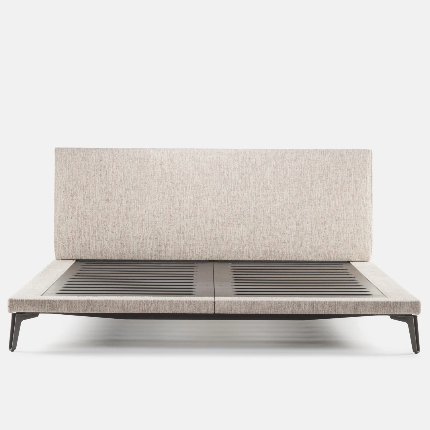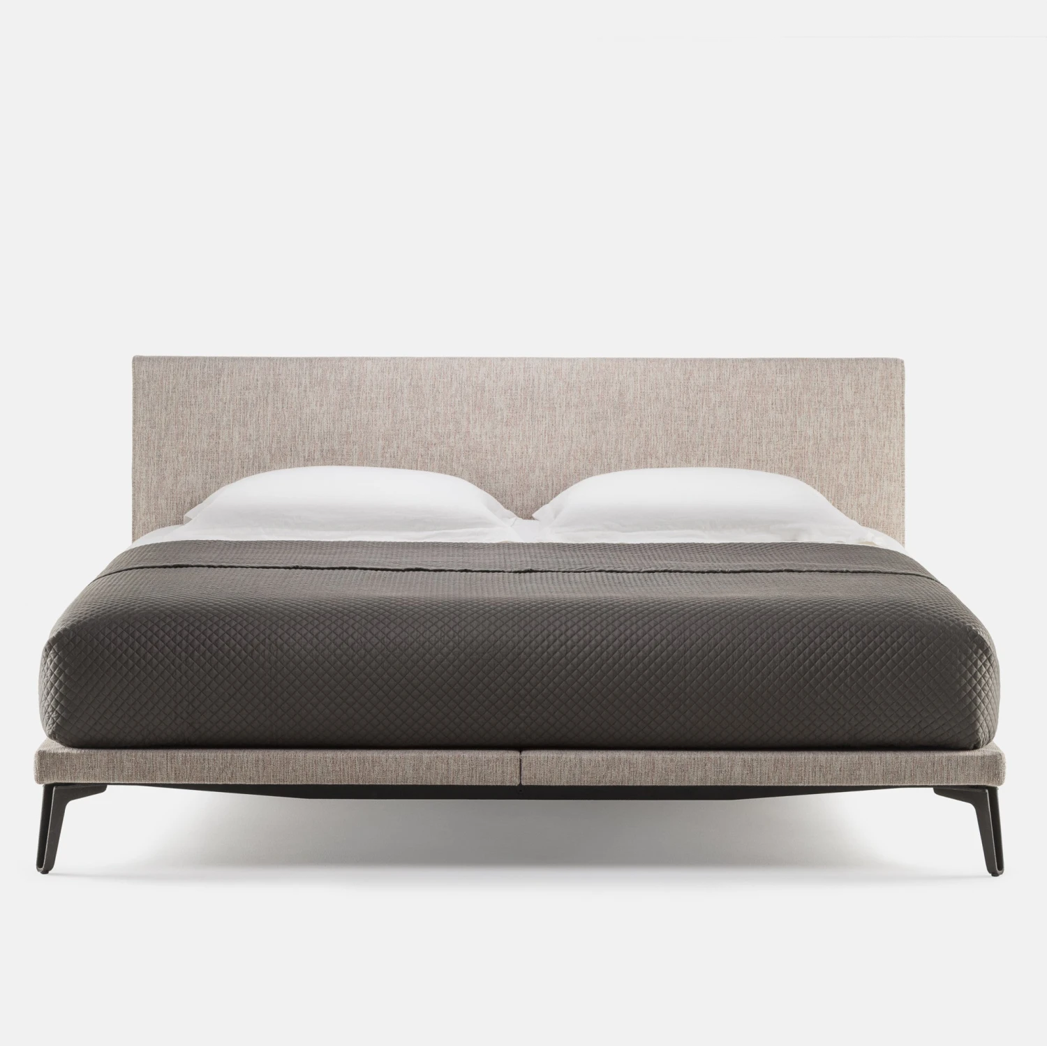 McQueen Bed is strong, elegant, and down-to-earth with its luxurious yet understated upholstered body set upon cast iron legs. Originally launched in 2011, the bed was reissued in 2016 with a taller headboard. This bed has beautiful detailing throughout.Â