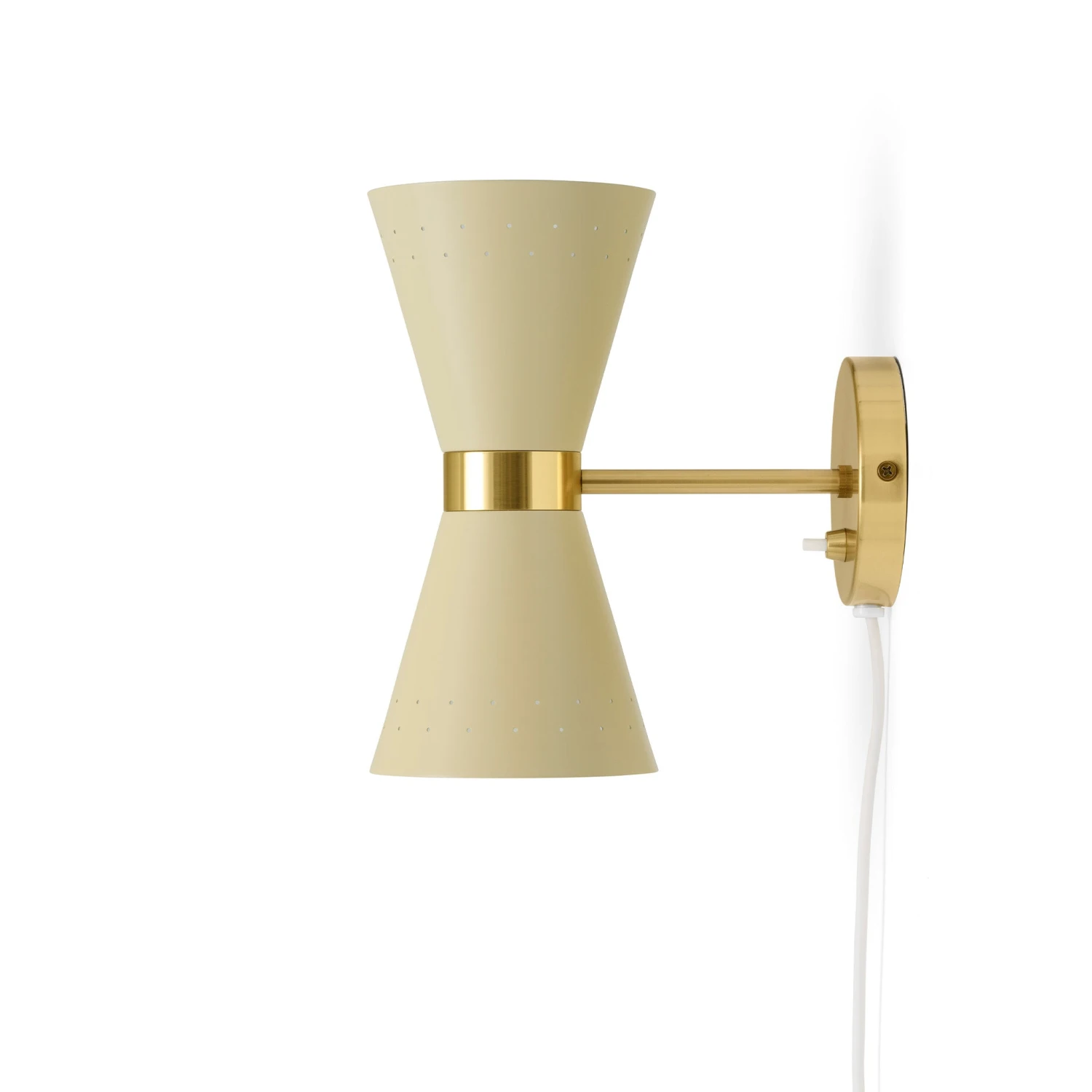 Comprising two conical shades that emit upward and downward light, Collector Wall Lamp is a timeless, mid-century design created in the 1950s by Alf Svensson. The wall-mounted lamp is defined by a brass band and small perforations in the shades that allow the light to shine through.