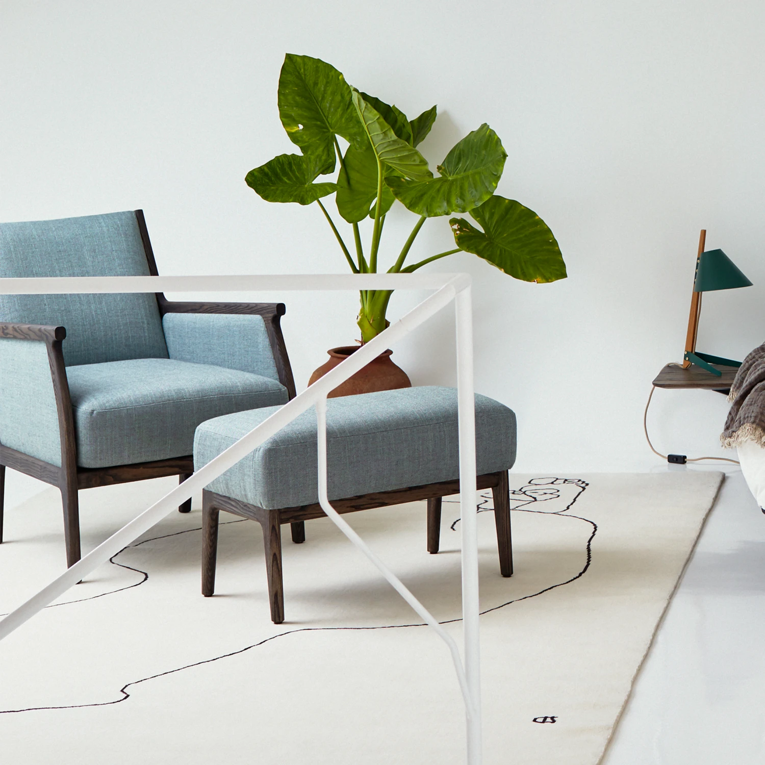 Mira is a visually light, modern transformation of the traditional Bergère chair and the Mira Ottoman is its perfect partner. Mira Lounge chair available separately.
