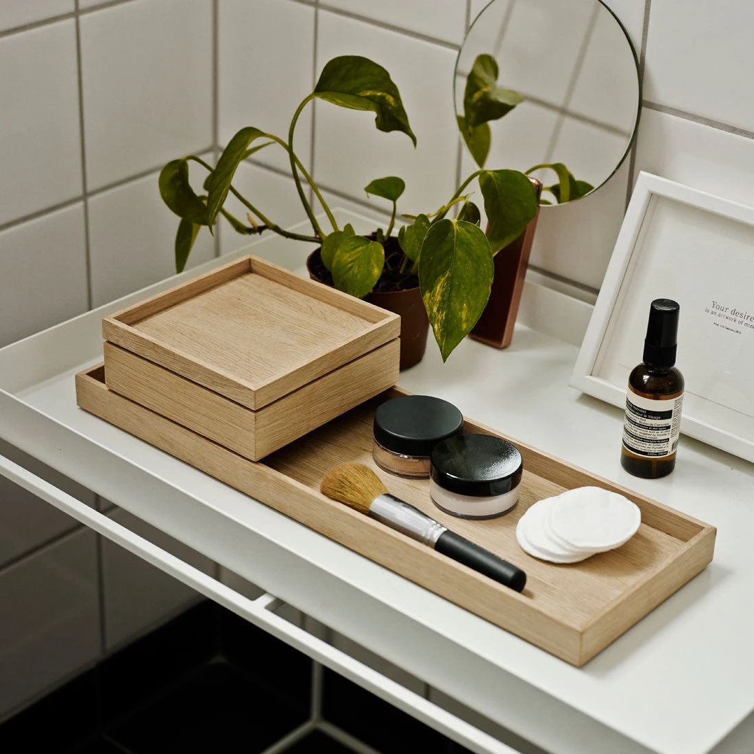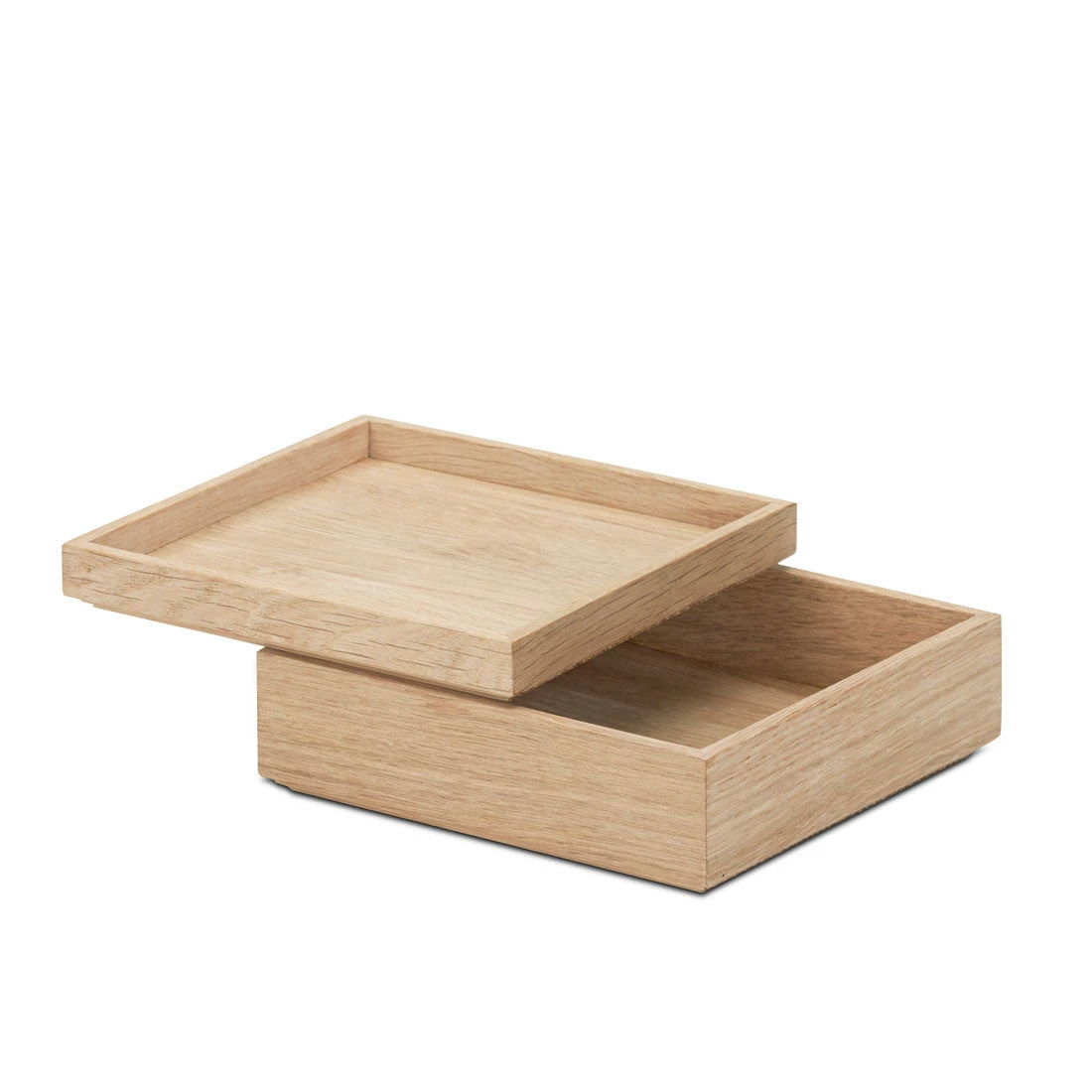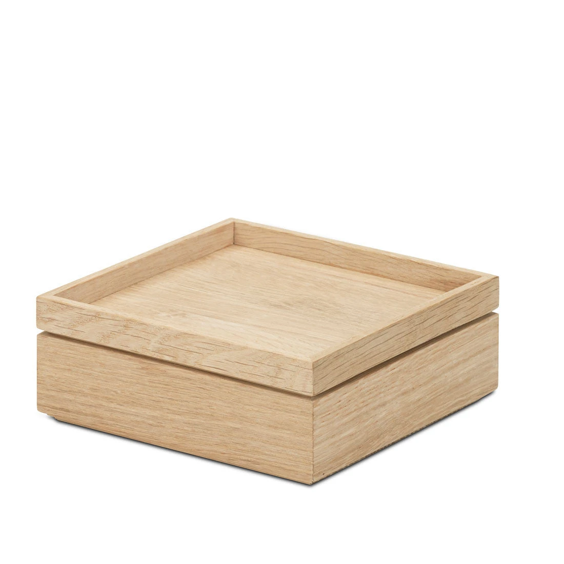 A beautifully-crafted square, wooden box with a deep lid which you can store items on too. For keys, lights, jewellery, clips and other homeless items in your house. Combine it with the other designs in the Nomad series to add more layer and functions.
