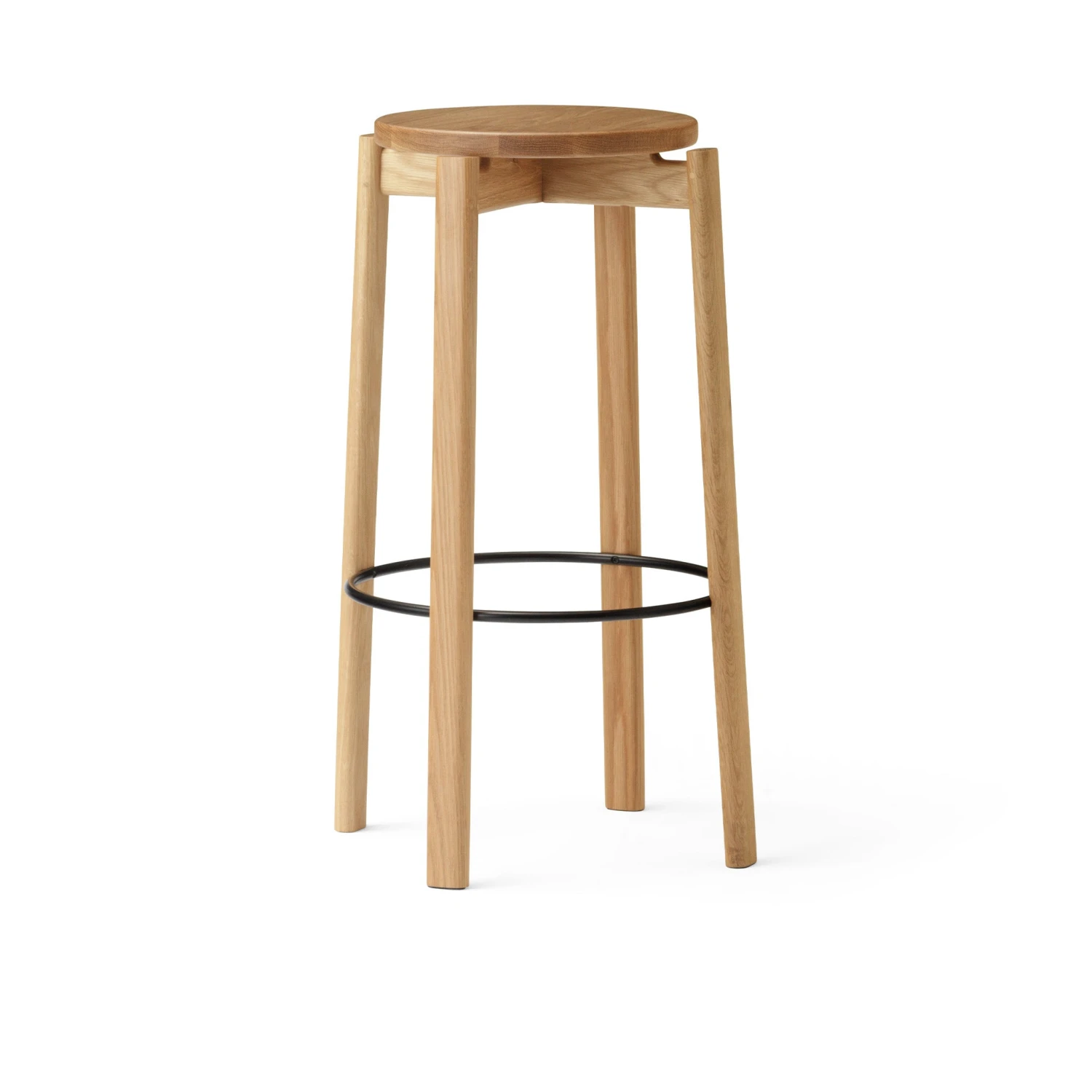 This solid oak stool is carefully crafted with all the hallmarks of great carpentry. Offered in a natural or dark lacquered finish, the warm expression and organic silhouette invite to touch. Place the versatile design anywhere where an extra seat is required.