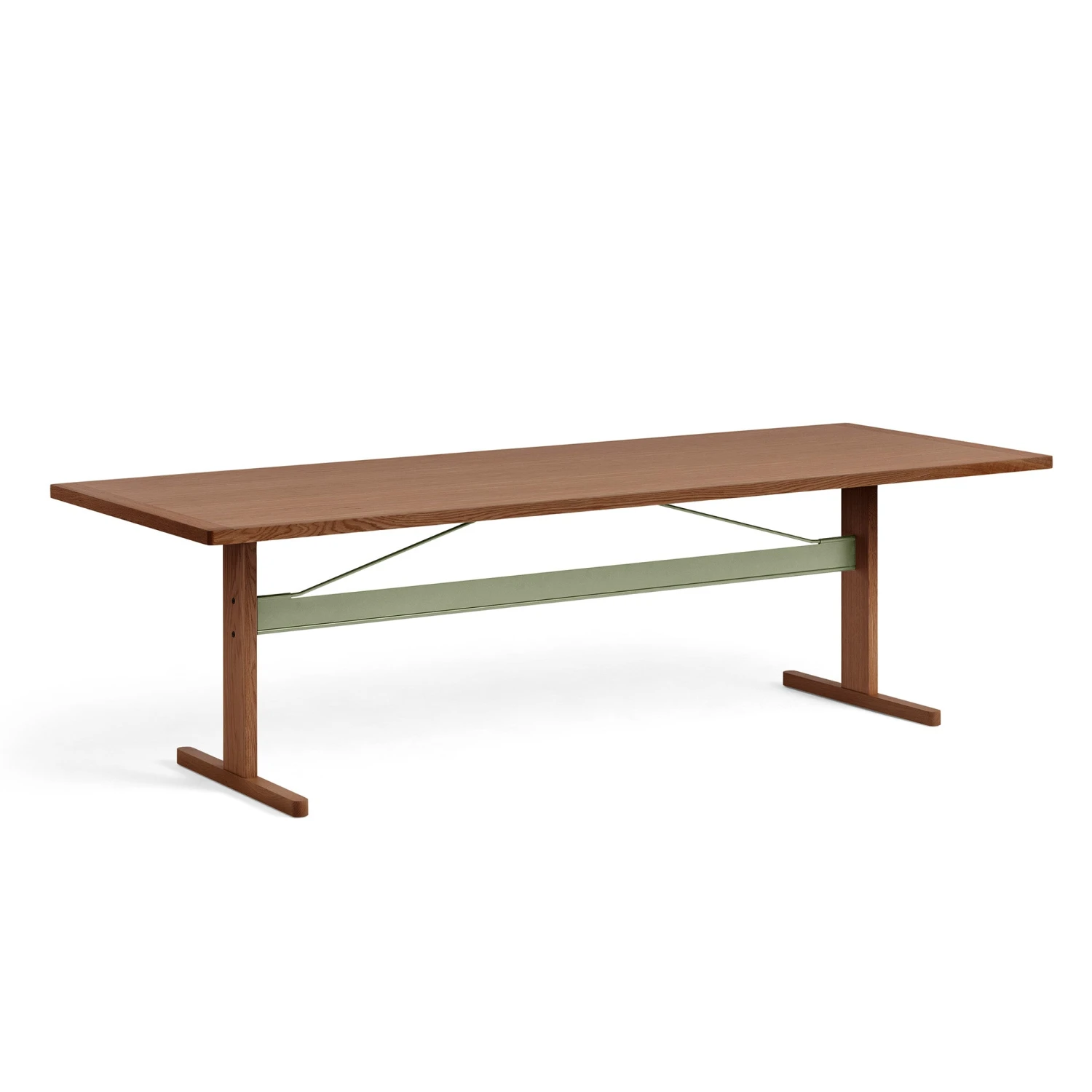 Veneer tabletop has 70 mm cross stitched veneer on short ends. Water-based lacquered solid wood frame, veneered plywood upright with solid wood edges.