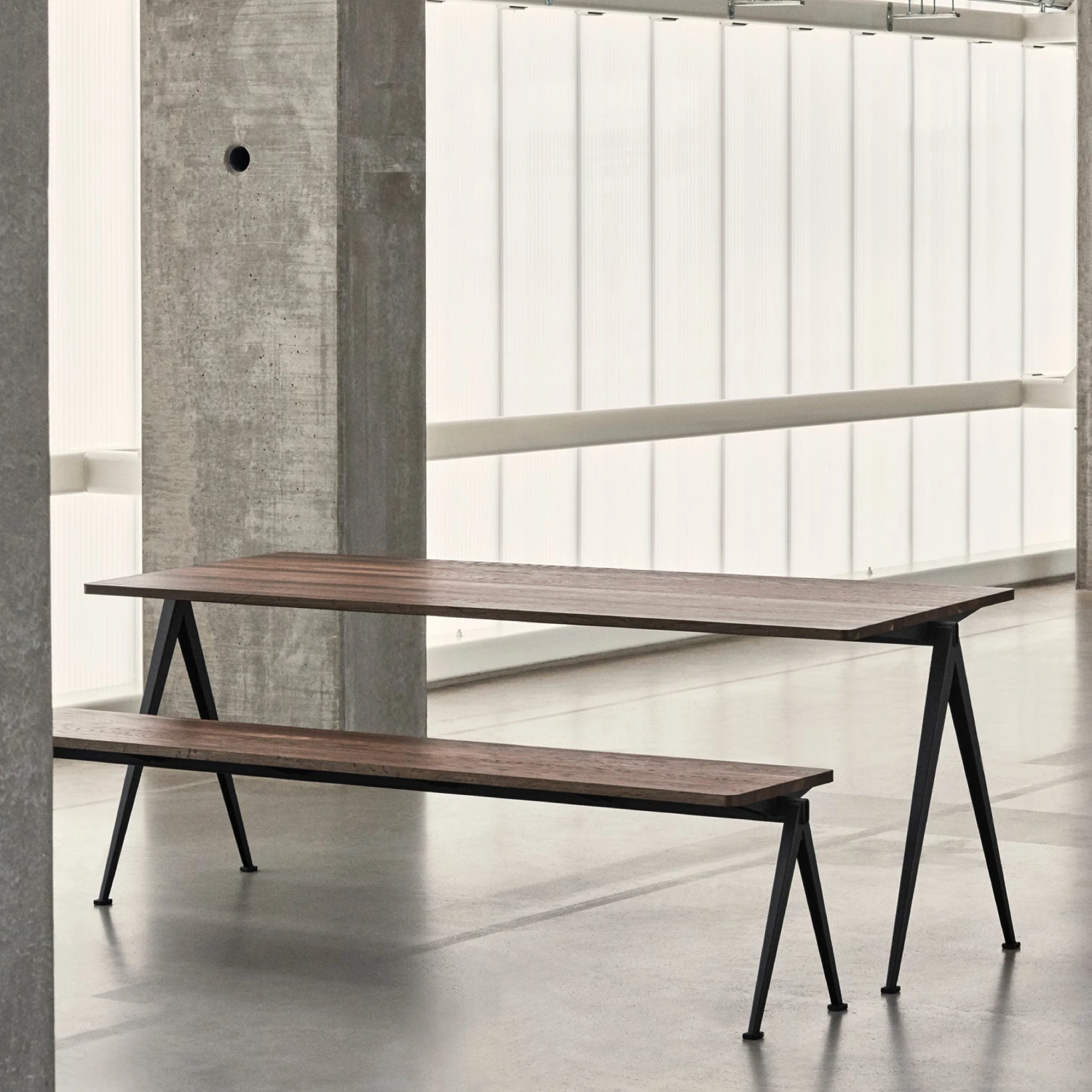 Designed to be functional, light and strong, the Pyramid Bench features a thin steel-sheet base with a rectangular oak top. Originally created by Wim Rietveld while working at Ahrend in the 1950s, the cutout steel collection has been relaunched by HAY together with Ahrend.