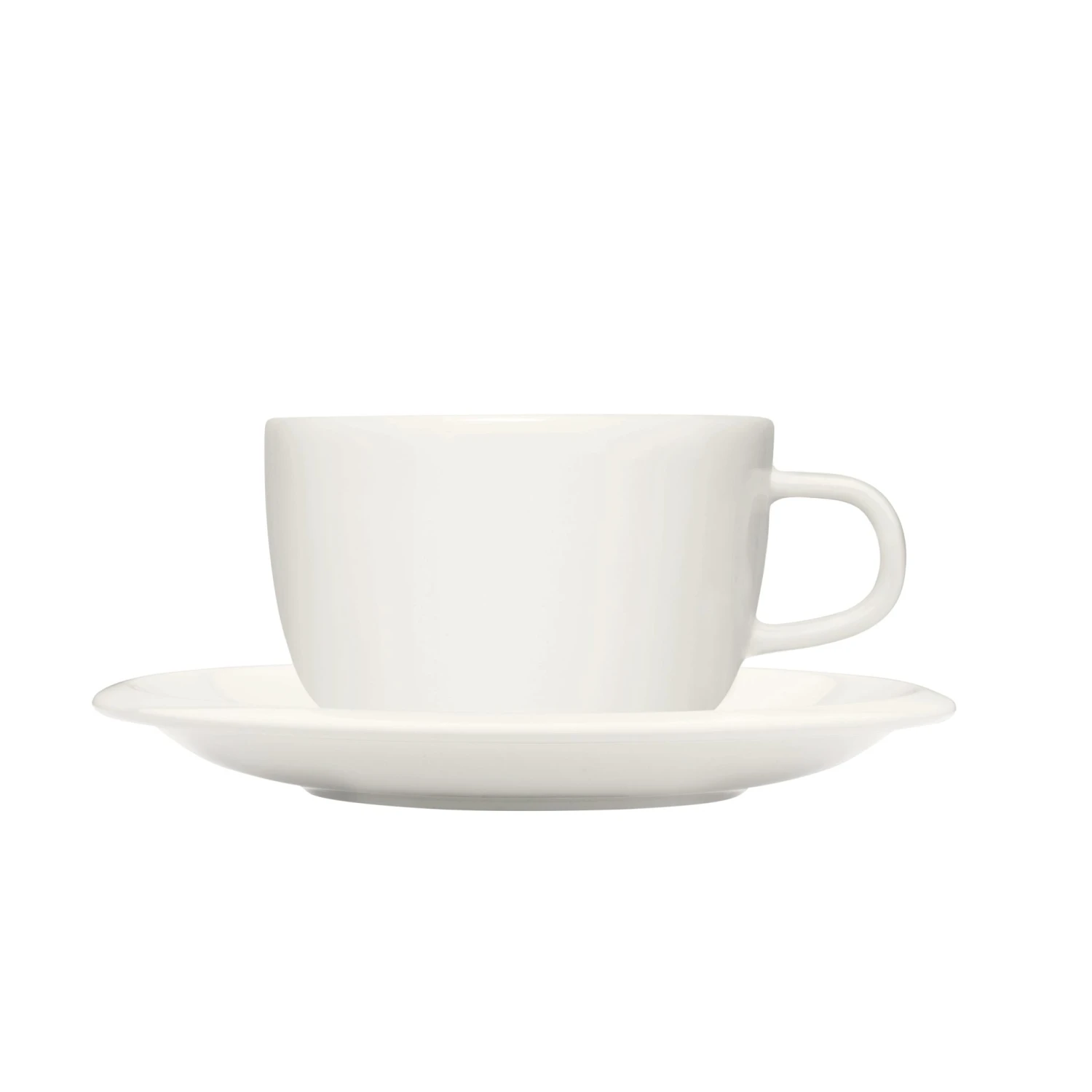 The versatile Raami cup instantly creates a relaxed atmosphere for every occasion. Perfect for coffee and tea. Comes with a matching saucer in classic white porcelain. Dishwasher safe.