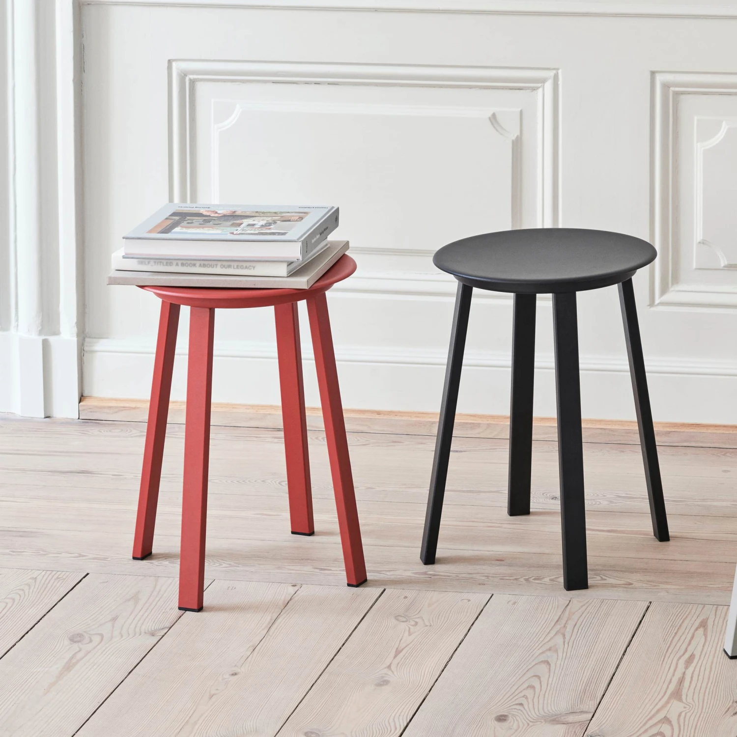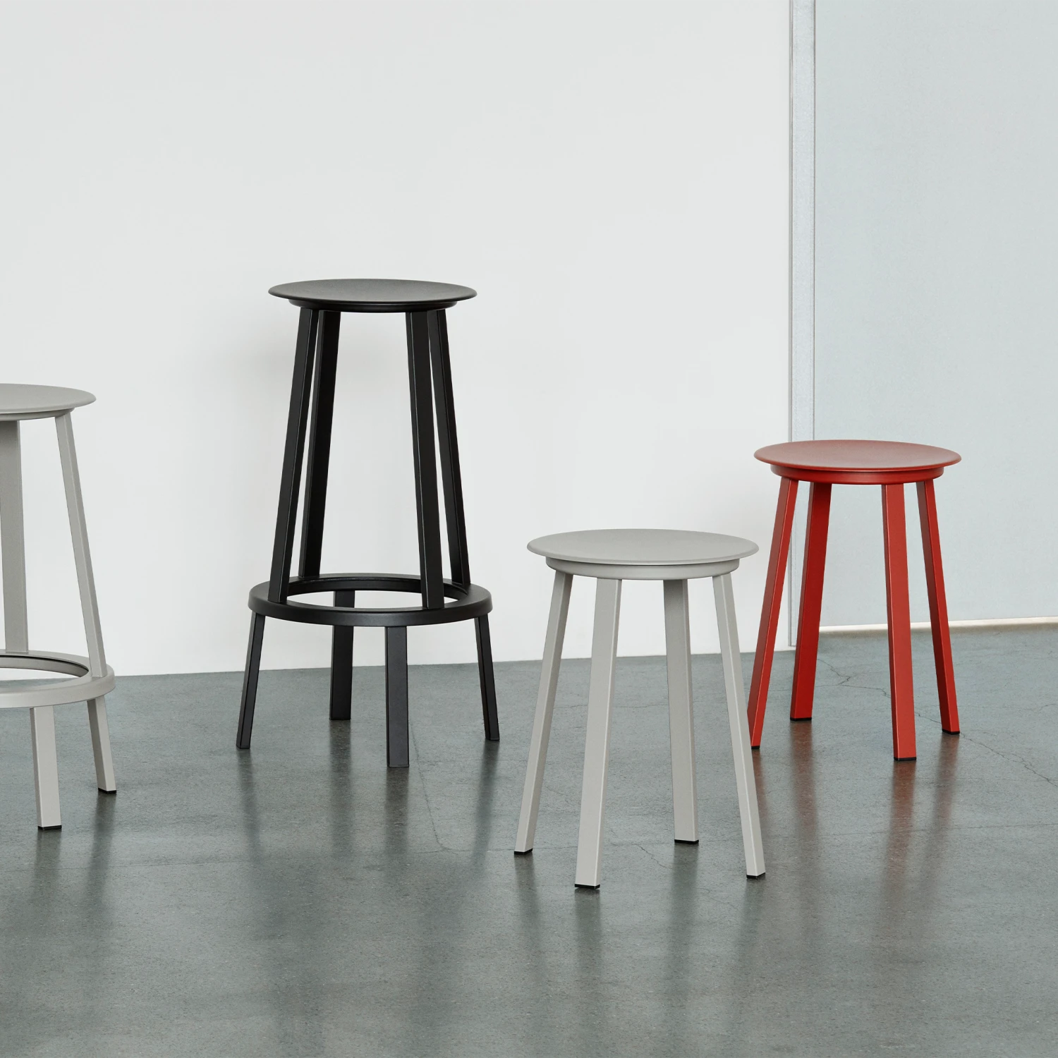 Sharing the same bearing mechanism as the Revolver Bar Stool, which enables the seat to rotate 360 degrees, Leon Ransmeier’s Revolver Stool offers a versatile and functional design. The slim, slightly dished seat with curved edges is offset by straight, angled legs, creating an uncluttered silhouette that offers limitless applications. Made in powder coated steel with a choice of colours, this lower version is suitable for a wide range of public and residential environments.