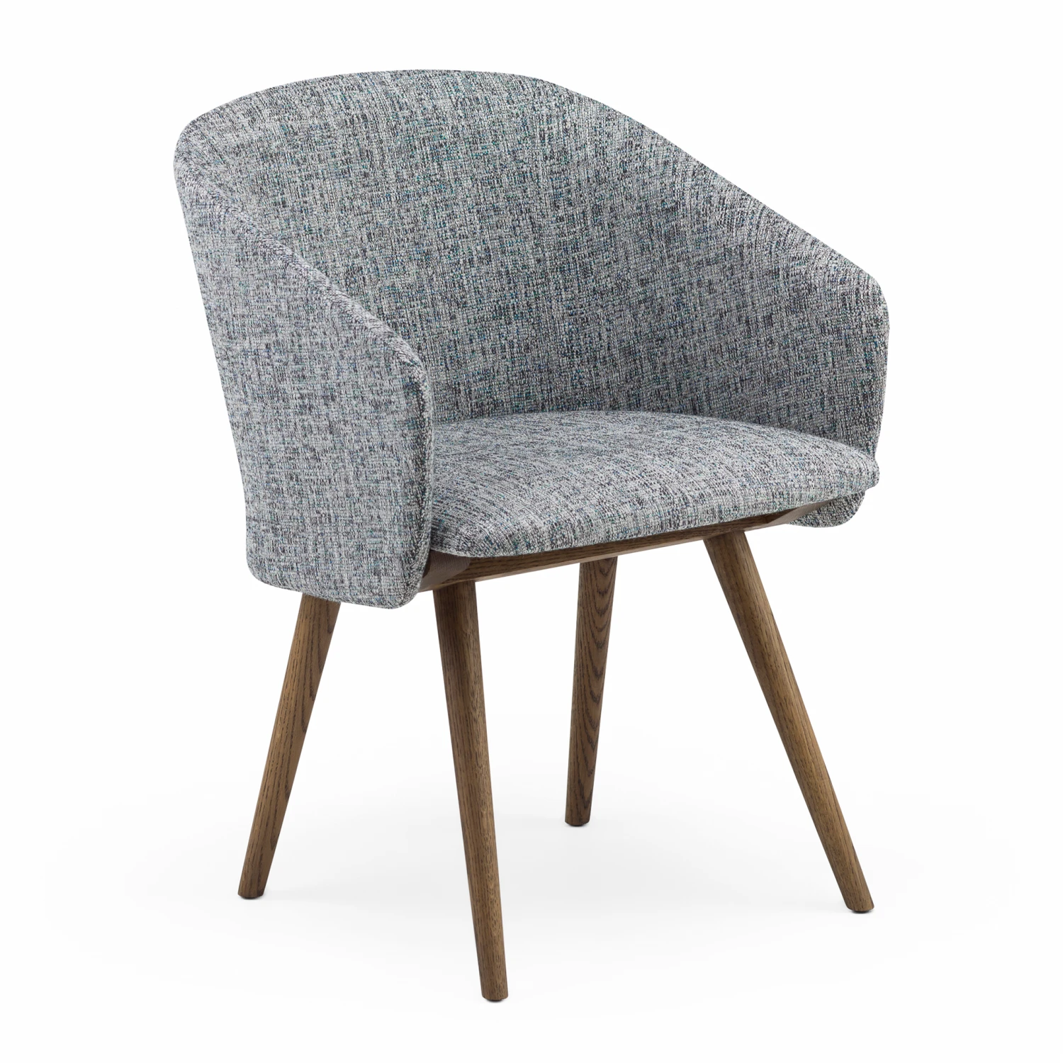 Saia is a family of visually light shell seating with an elegant form and refined comfort. The upholstery was designed to be crafted in two parts to create visual levity and to allow the seating to be upholstered in a single material or a combination of two. The proportions were carefully considered for ergonomics, beauty, and performance in a variety of environments.