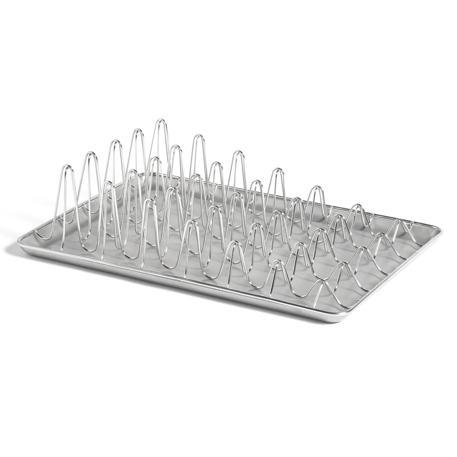 Leon Ransmeier’s Shortwave Dish Rack uses undulating lines to create a strong design language that serves a functional purpose too. This stainless steel dish rack comes with a tray made to catch any excess water.