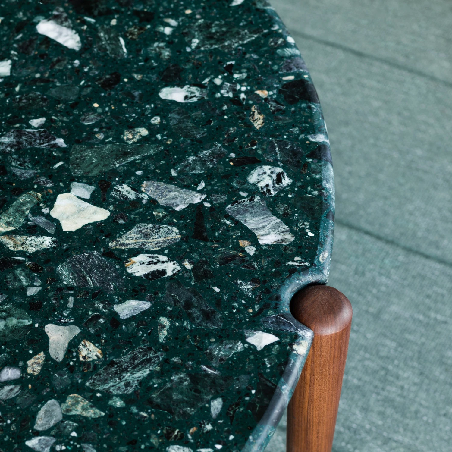 Terrazzo tabletop in a choice of colours: Branco, Cinza, Castanho or Verde. The terrazzo top is removable for ease of transport and cleaning.