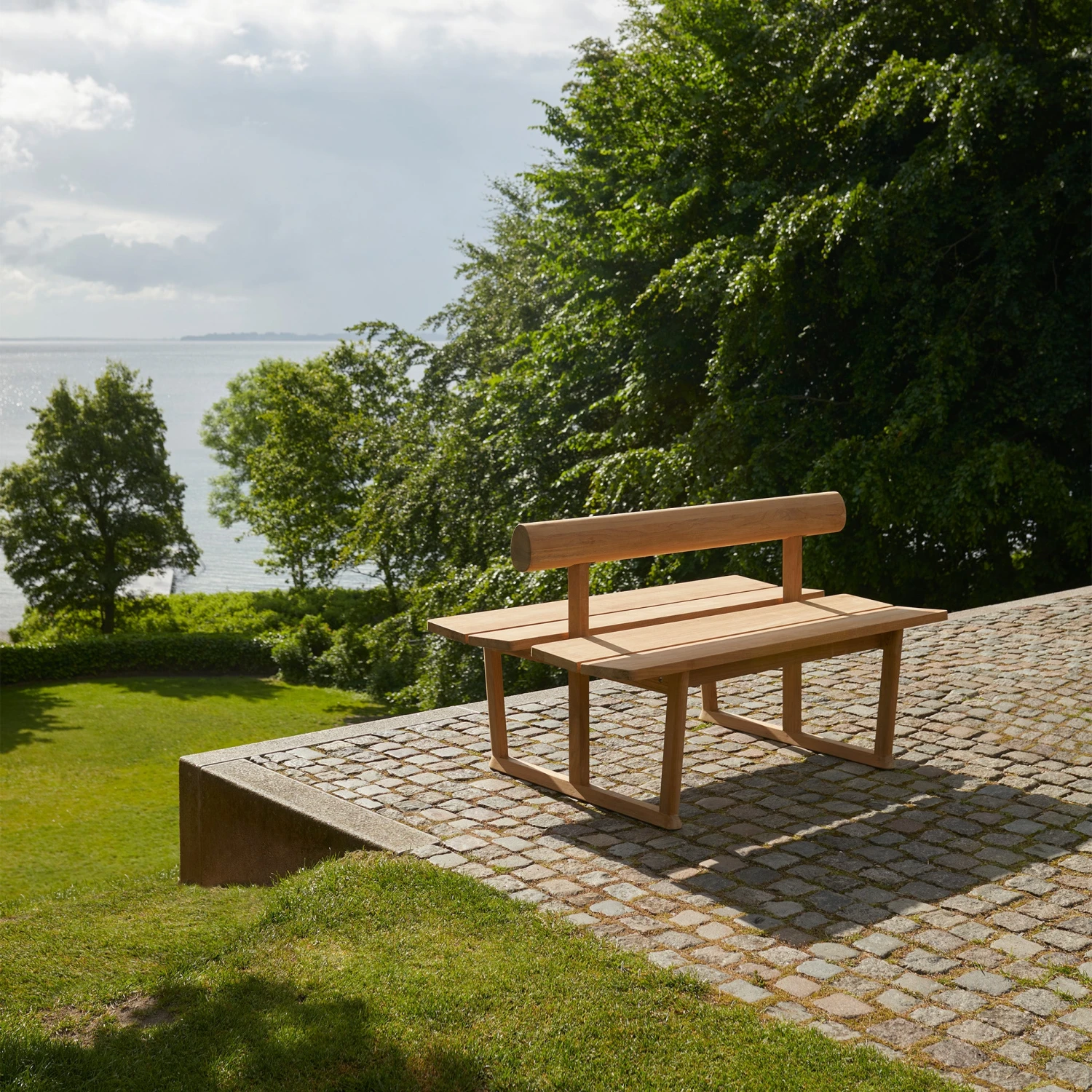 The organic backrest is both expressive and functional, and is perfectly shaped for the contour of the back. This double design enables people to sit in either direction on the bench.
