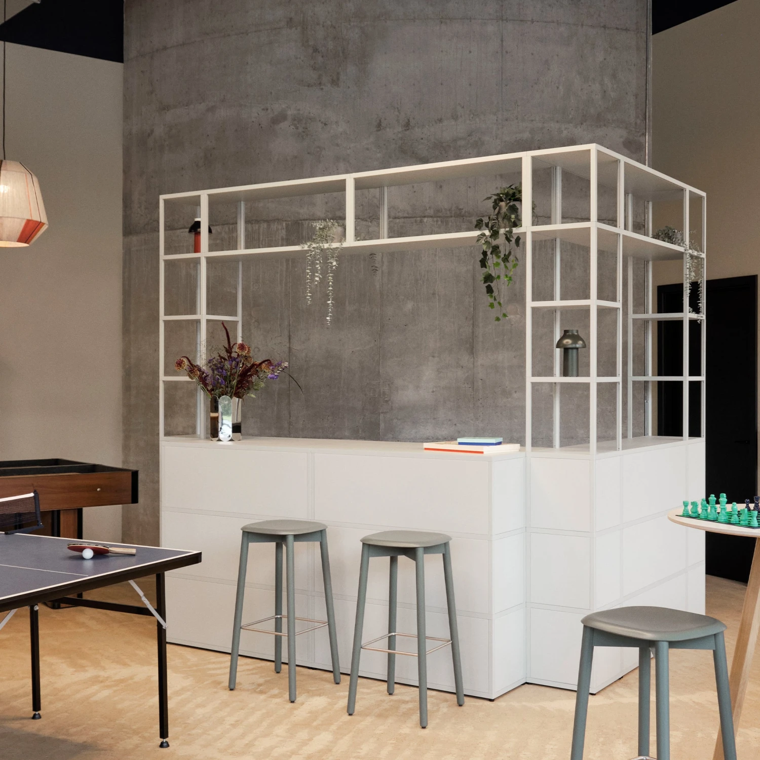 All the edges of the ultra-thin, soft-formed seats are bent away from the body, designed to optimise human-centric comfort. This stool variant features legs in solid oak for maximum stability and longevity.