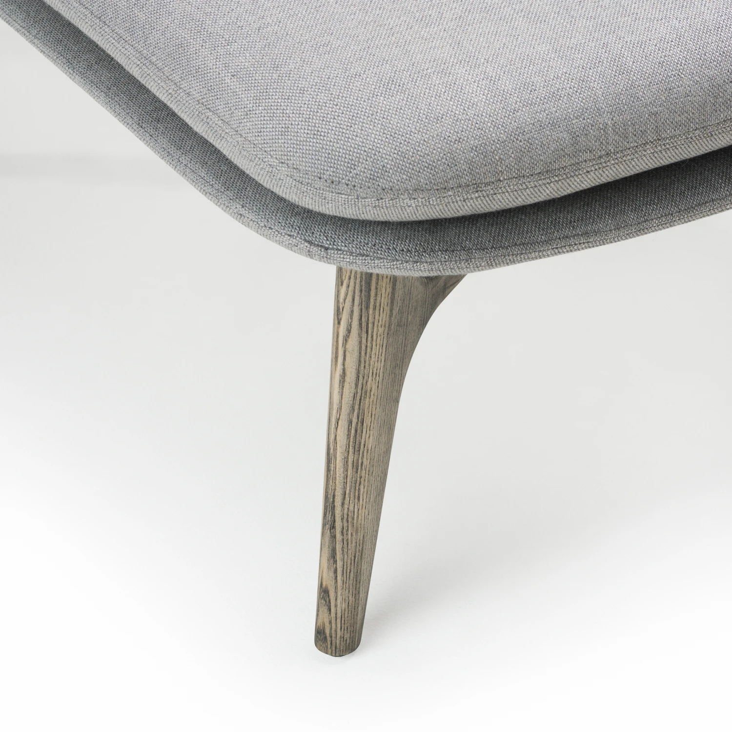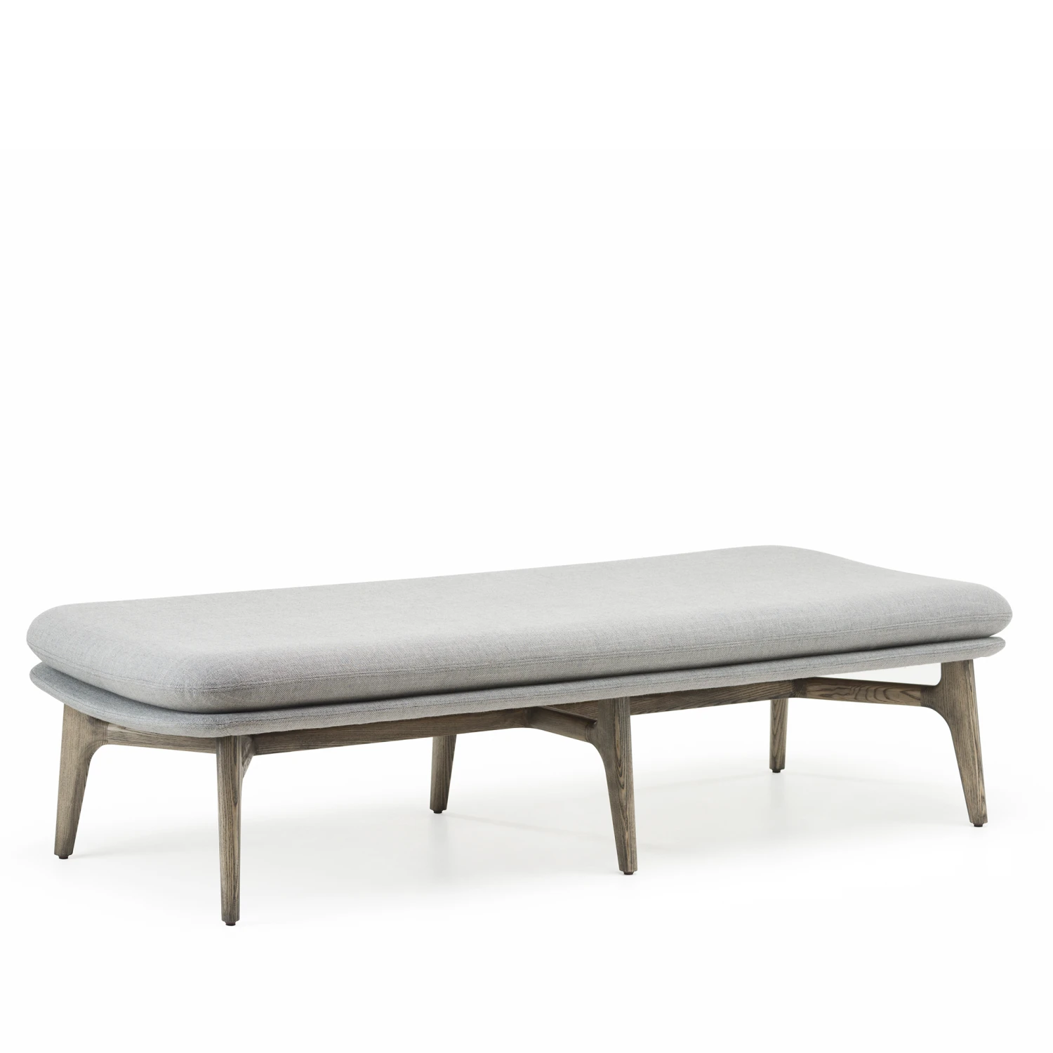 Solo Daybed is a sophisticated design with an upholstered seat set upon solid wood legs. The leg frame, designed to harness the natural strength of solid wood, includes mortise and tenon joinery throughout, and a bridle joint where the cross brace components intersect.