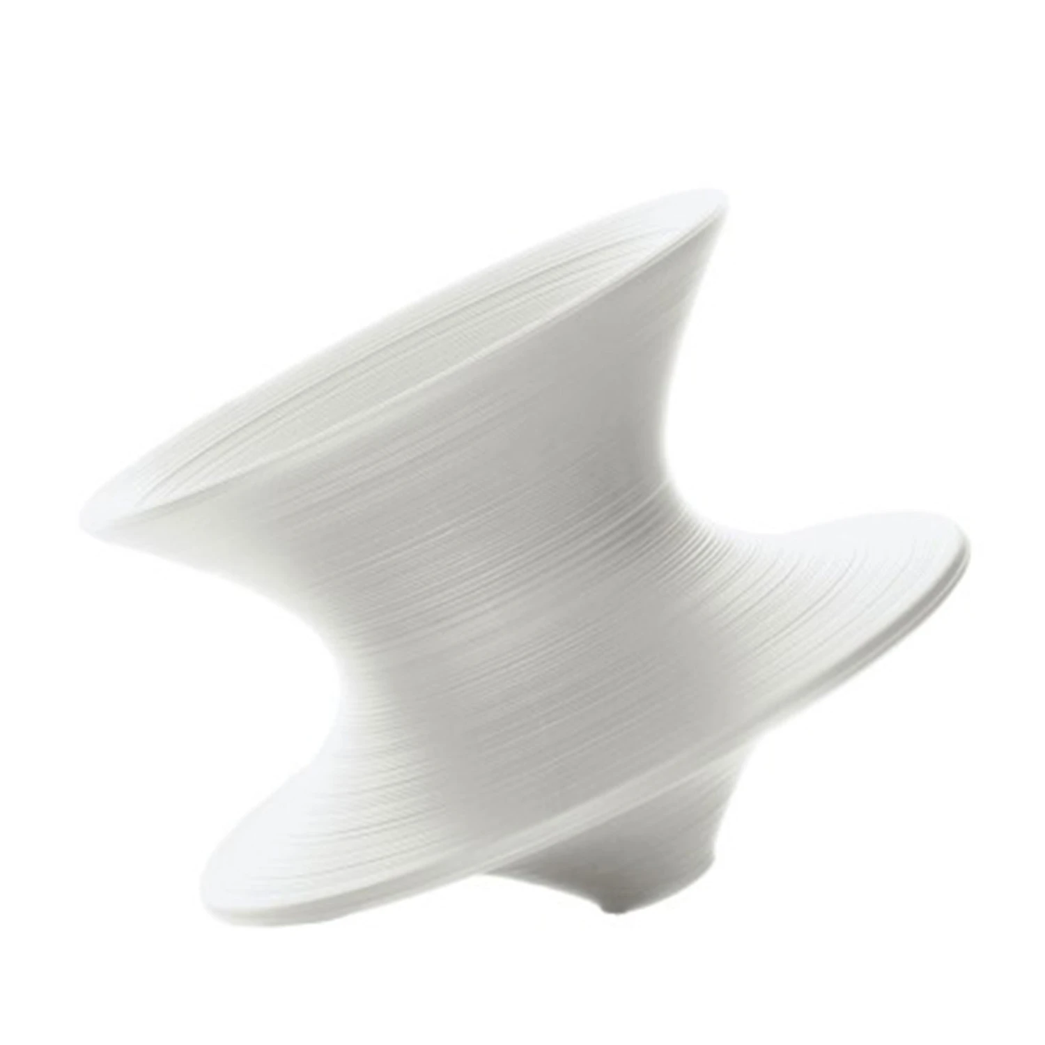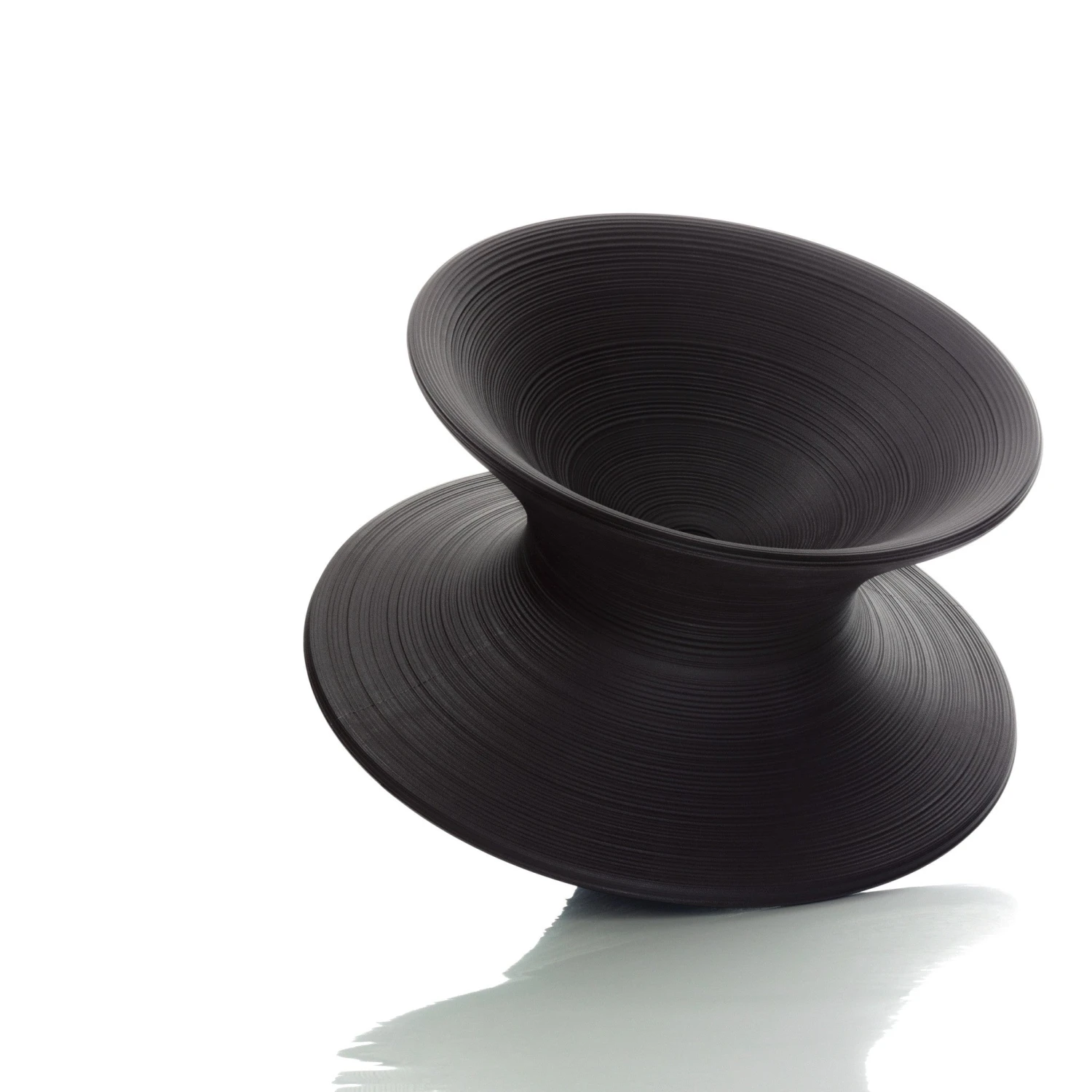 When upright Spun is a sculptural vessel and when lent on its side Spun allows its user to swivel in a circular rocking motion, including being able to rotate in a complete circle. Spun is suitable for indoor and outdoor use.
