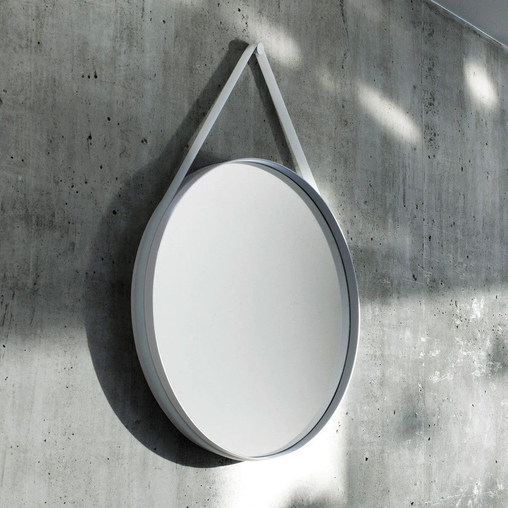 Strap Mirror has kept the design stripped to a clean, circular shape. Strap features a groove around the edge to contain a sturdy rubber strap that is used to mount the mirror on the wall. With its functional and minimalistic design, Strap Mirror is perfect for hanging in bedrooms and hallways.