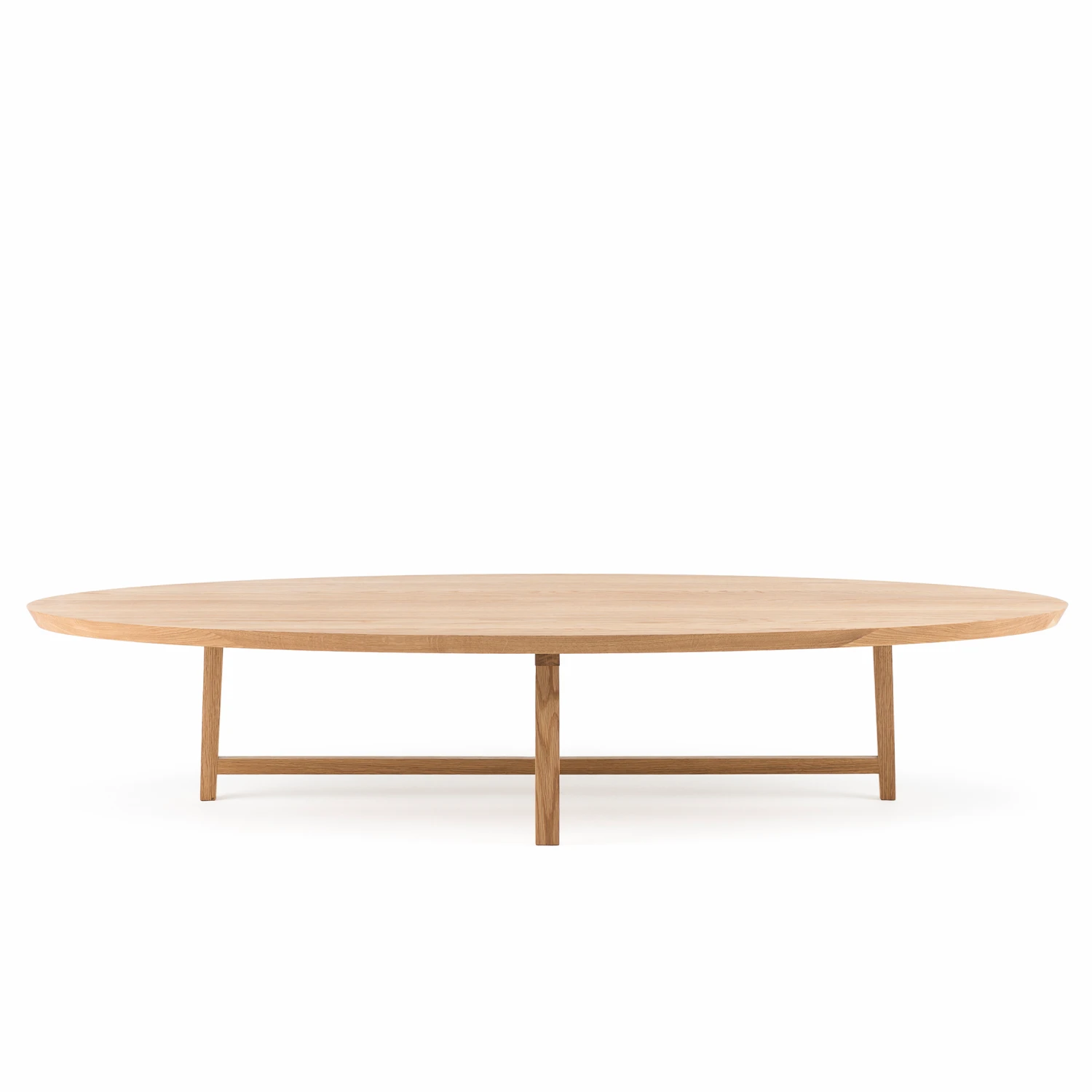 The Trio series is a tectonic exploration where the composition of the table legs is the design focal point. The tables stand on three legs, with each leg attached to another leg with an intermediate horizontal substructure. The tables express a purity of form and material, with the unexpected design focus under the table, where an intricately composed lattice work brings a hidden elegance to the otherwise simple and unassuming table ensemble.Â