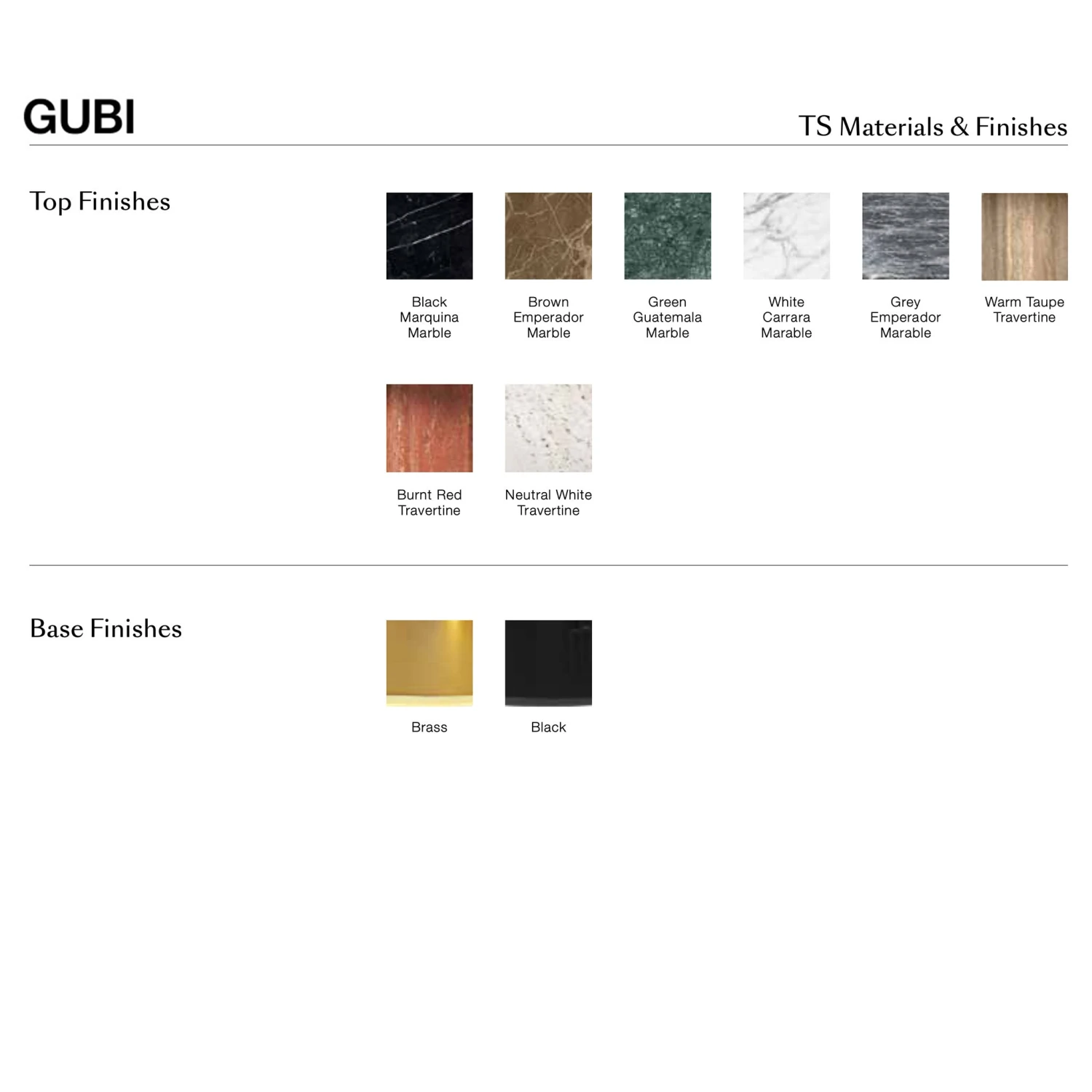 Choose from different sizes and marble top options: white (Carrara), black (Nero Marquina), brown (Brown Emperador), grey (Grey Emperador) and green (Verde Guatemala). The frame is available in either black lacquered or brass finish.
