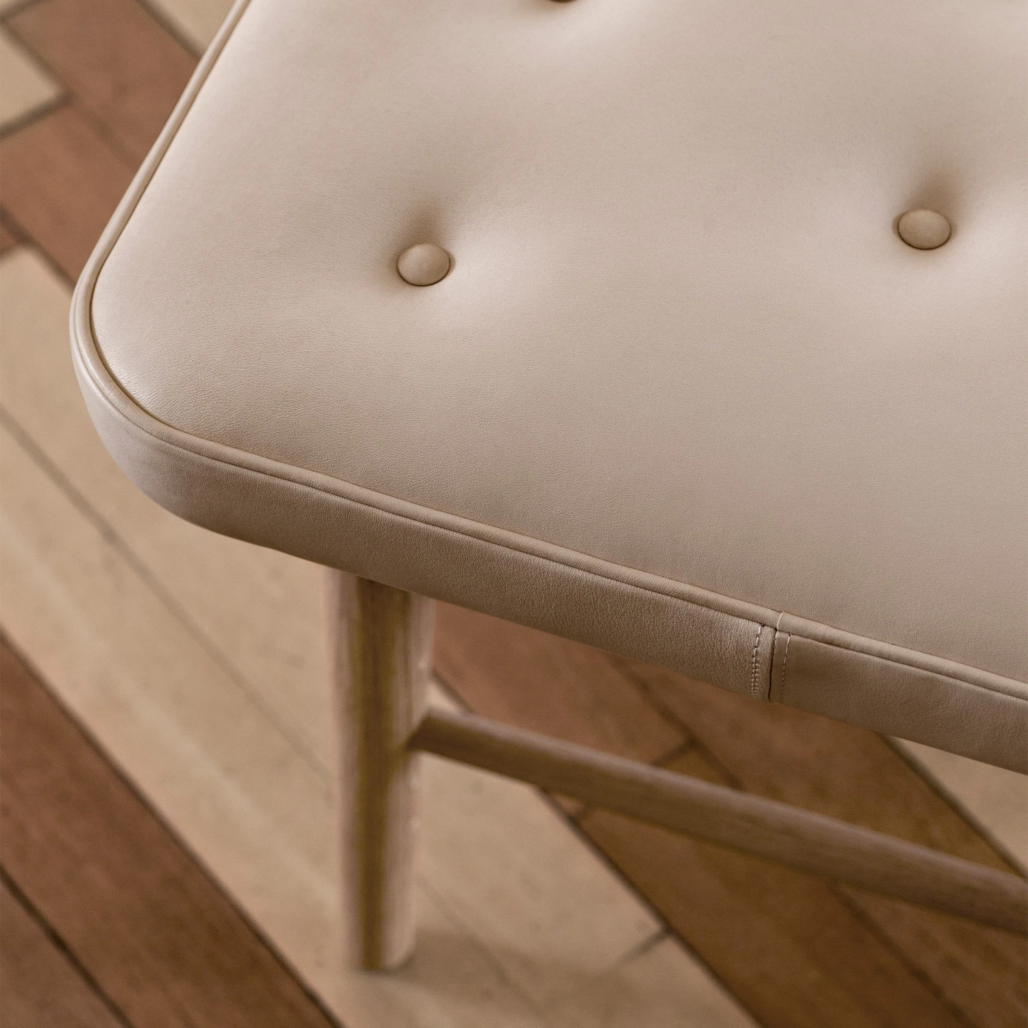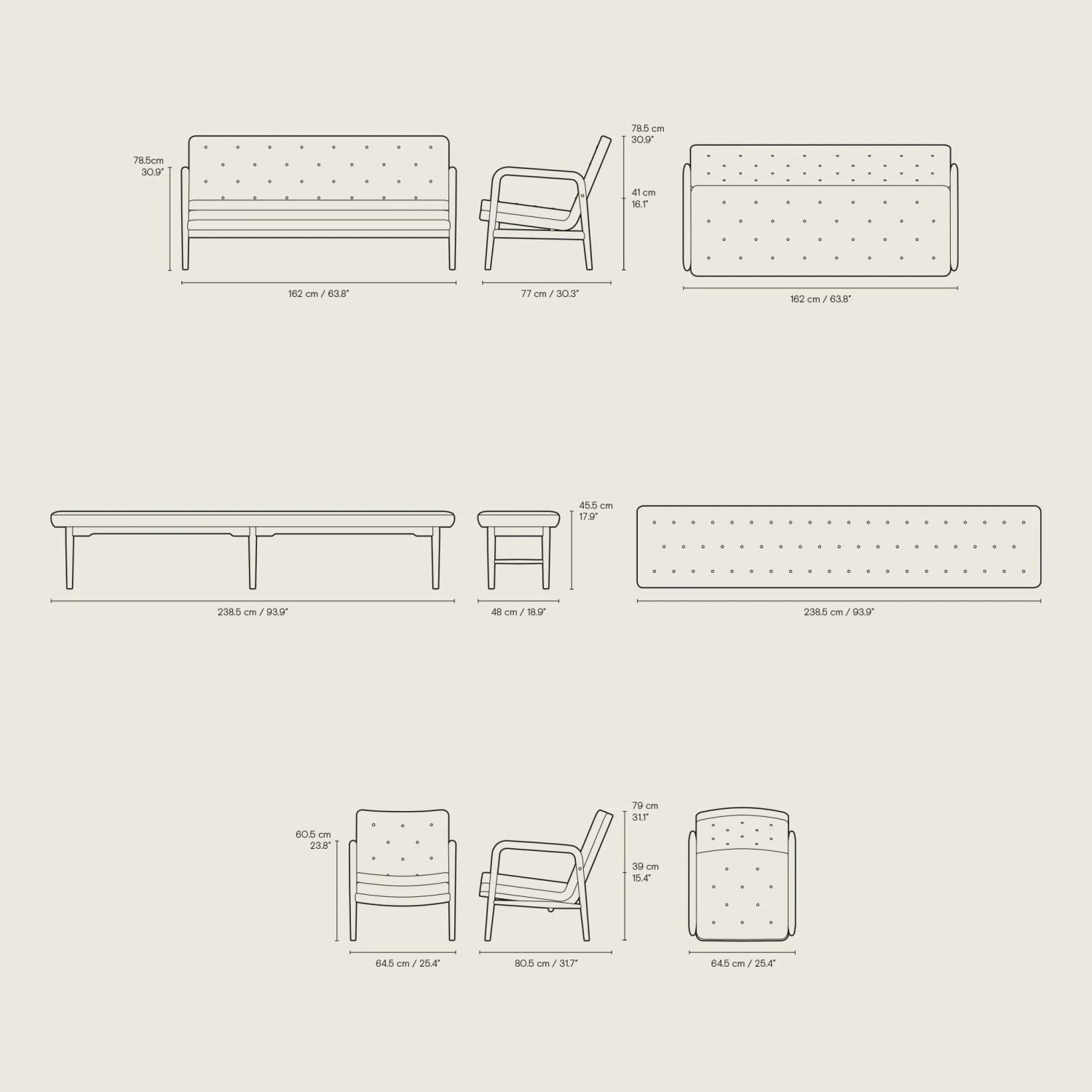 Upholstery in a range of leather options – see below for details. Please note: buttons will always match upholstery.