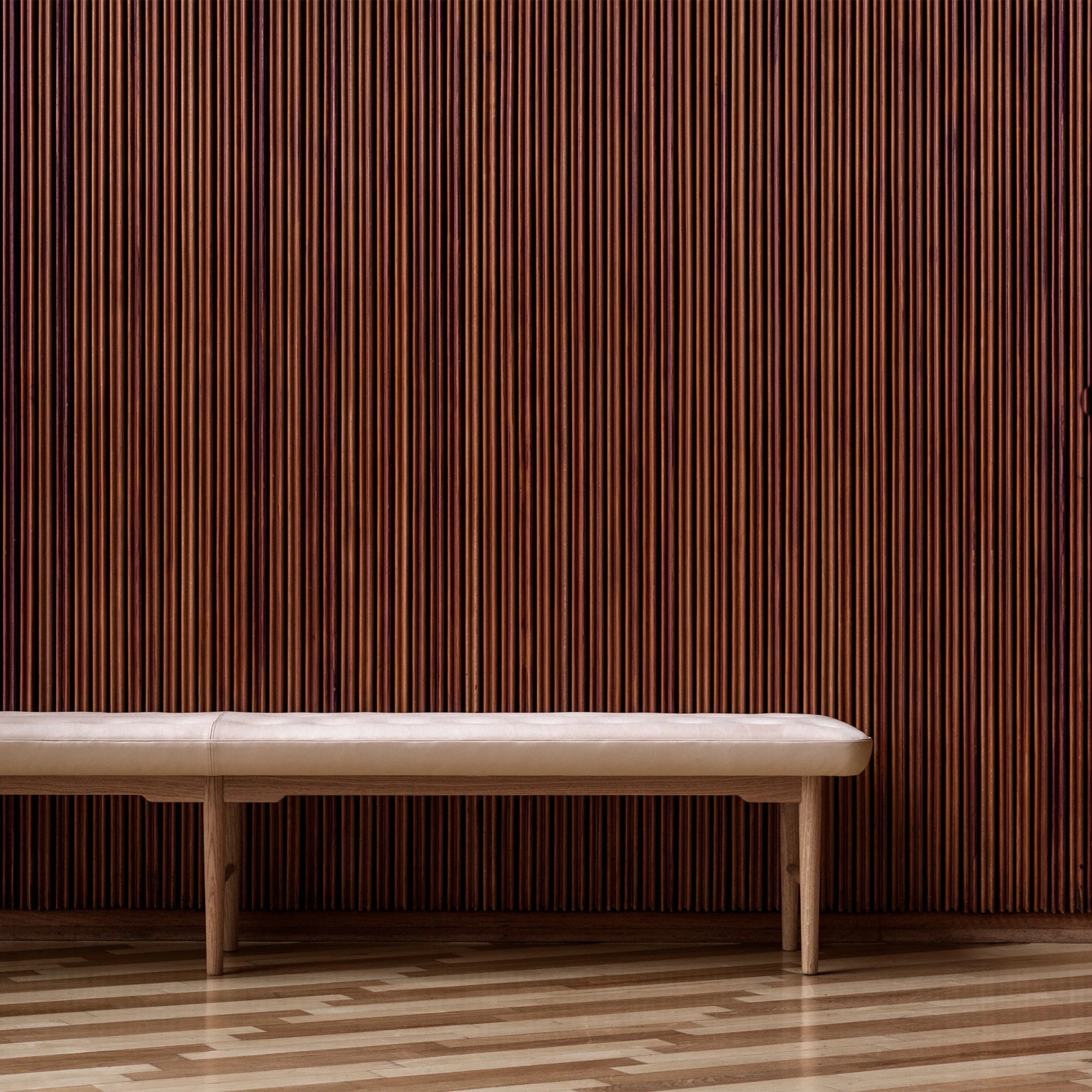 This luxurious and elegant furniture has been recreated in close collaboration with Vilhelm Lauritzen Architects and with great respect for the original design. Our images show the bench in Oiled Oak and Sif Leather / 90.
