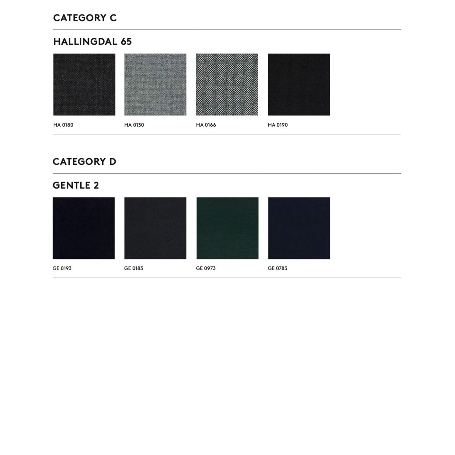 Solid wood frame, upholstery in selected range, legs in solid oak natural or black-stained.Â