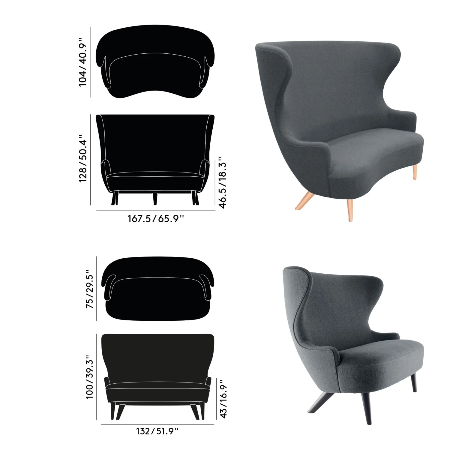 Standard Wingback Sofa W167.5 × H128 × D104cm SH 46.5cm