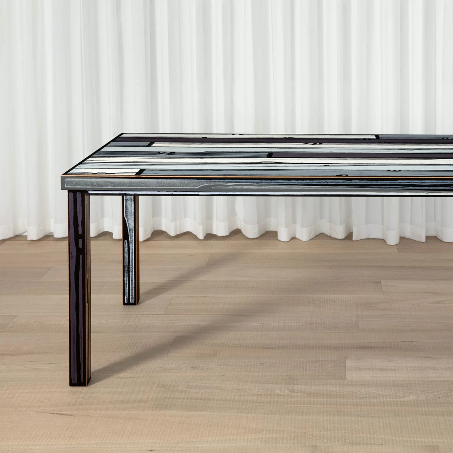 The Wrongwoods Table is an easy way to add a contemporary art print to any space. Sebastian Wrong’s utilitarian table provides an everyday canvas to Richard Woods’ colourful, wood-grain block prints in this longstanding collaboration between artist and designer.
